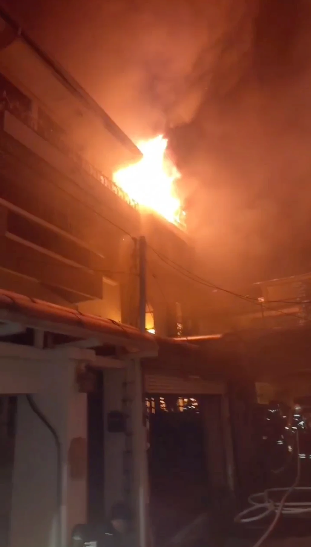 嘉義市消防局晚間8時許接獲報案指出,上述民宅起火,立即派遣16車、44名警消及3名役男前往搶救。由於現場巷道狹窄,消防車及雲梯車進出不易,抵達時整棟3層透天厝及頂樓加蓋已全面陷入火海,火勢猛烈。