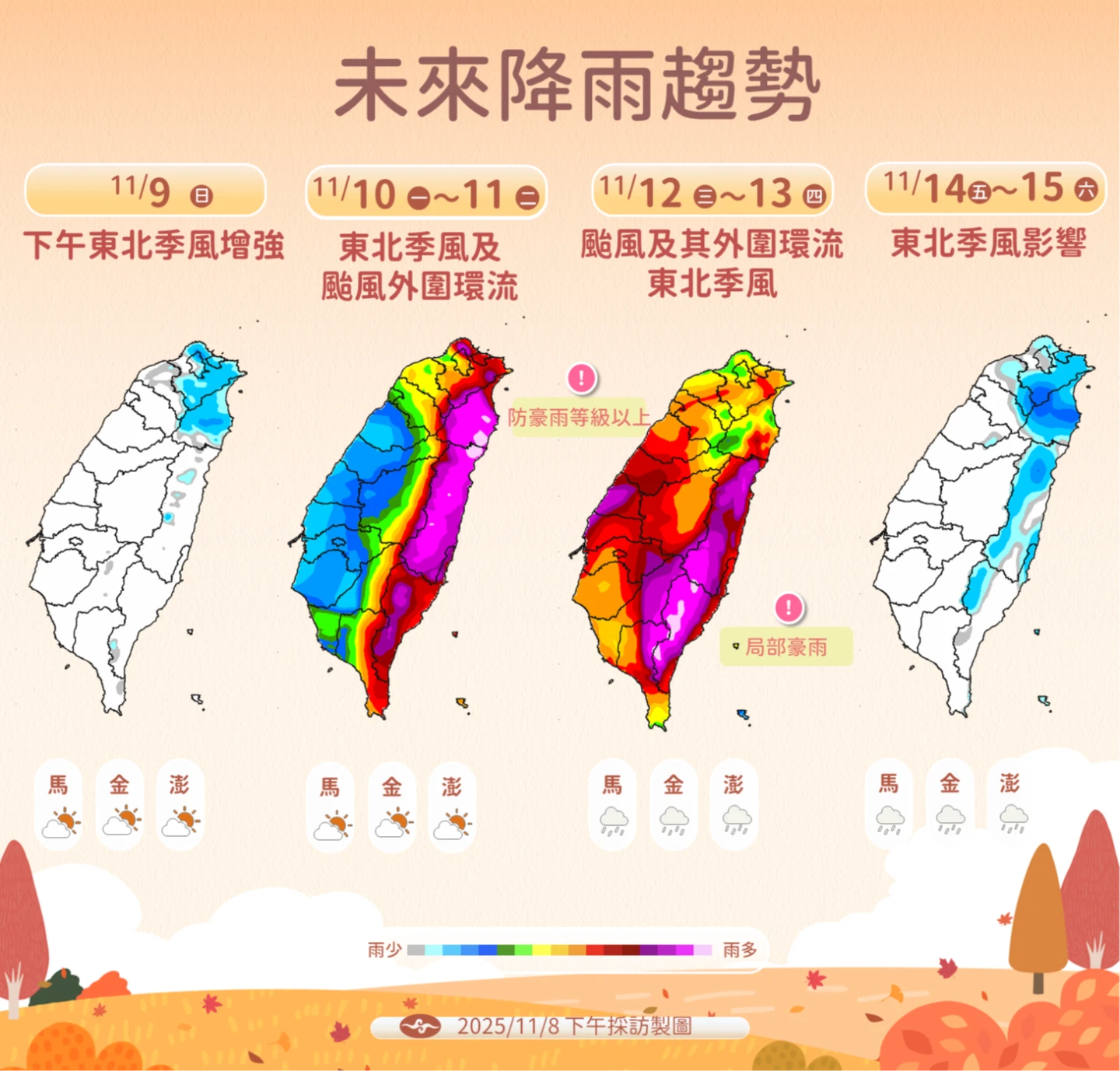 明上班日風雨漸增 11、12日防「共伴效應」大量致災雨