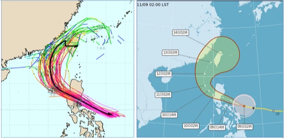 吳德榮指出,鳳凰颱風預估將在今晚以強烈颱風之姿登陸呂宋島。最新歐洲系集模式模擬與中央氣象署路徑潛勢預測圖均顯示,鳳凰通過呂宋島後將逐漸北轉,進入台灣西南方海面,其強度也將持續減弱。吳德榮指出,這符合11月北轉強颱的特性,由於受到呂宋島破壞、台灣地形阻斷部分水氣及部分中緯度穩定空氣逸入等因素,致使鳳凰強度減弱,這也是 11月少有強颱直接侵襲台灣的原因。