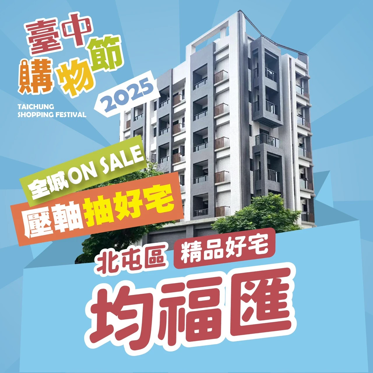 【記者王煌忠/台中報導】2025台中購物節已經邁入第七屆,年年創下驚人消費力,每年都會從消費登錄發票中,抽出一名豪宅得主,因此從10月24日開跑至今39天,累計登陸金額已經高達209億元,台中市府經發局也公布今年第7戶壓軸好宅,坐落在北屯區10期重點發展區的知名建案「均福匯」,一戶市價逼近千萬元,並附贈輕裝潢及車位,將在明年1月抽出豪宅幸運兒。