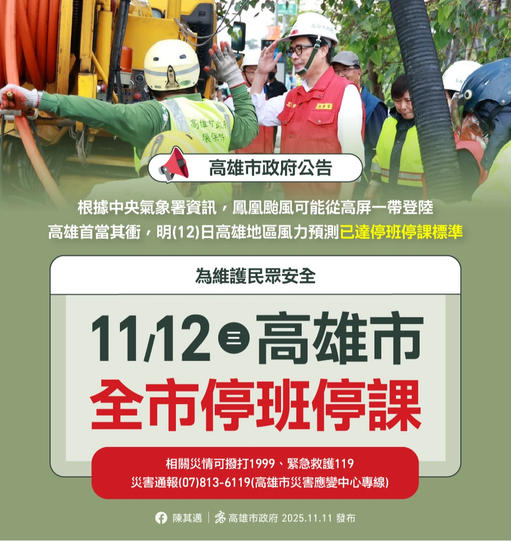 【記者於維奕/綜合報導】中央氣象署昨天凌晨5時30分針對鳳凰颱風發布陸上颱風警報,預估鳳凰將在今天傍晚至晚間左右非常接近台灣,登陸點可能在屏東、高雄,有望於周四清晨從台東附近出海,颱風加東北季風共伴效應已為宜蘭帶來致災姓豪大雨。《知新聞》為讀者整理今(12日)天全台停班停課資訊。