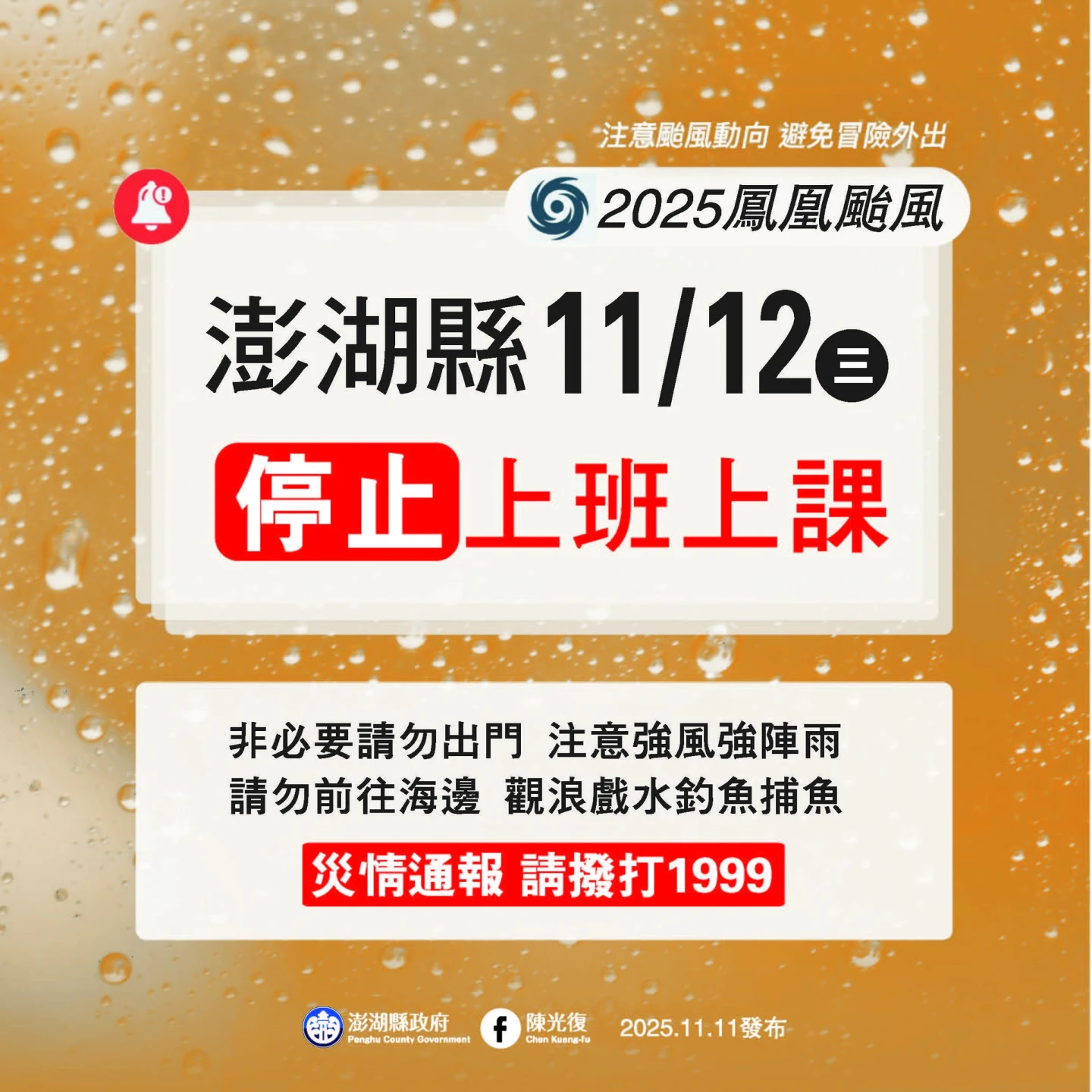 宜花東離島:宜、澎、花蓮3鄉鎮停班課