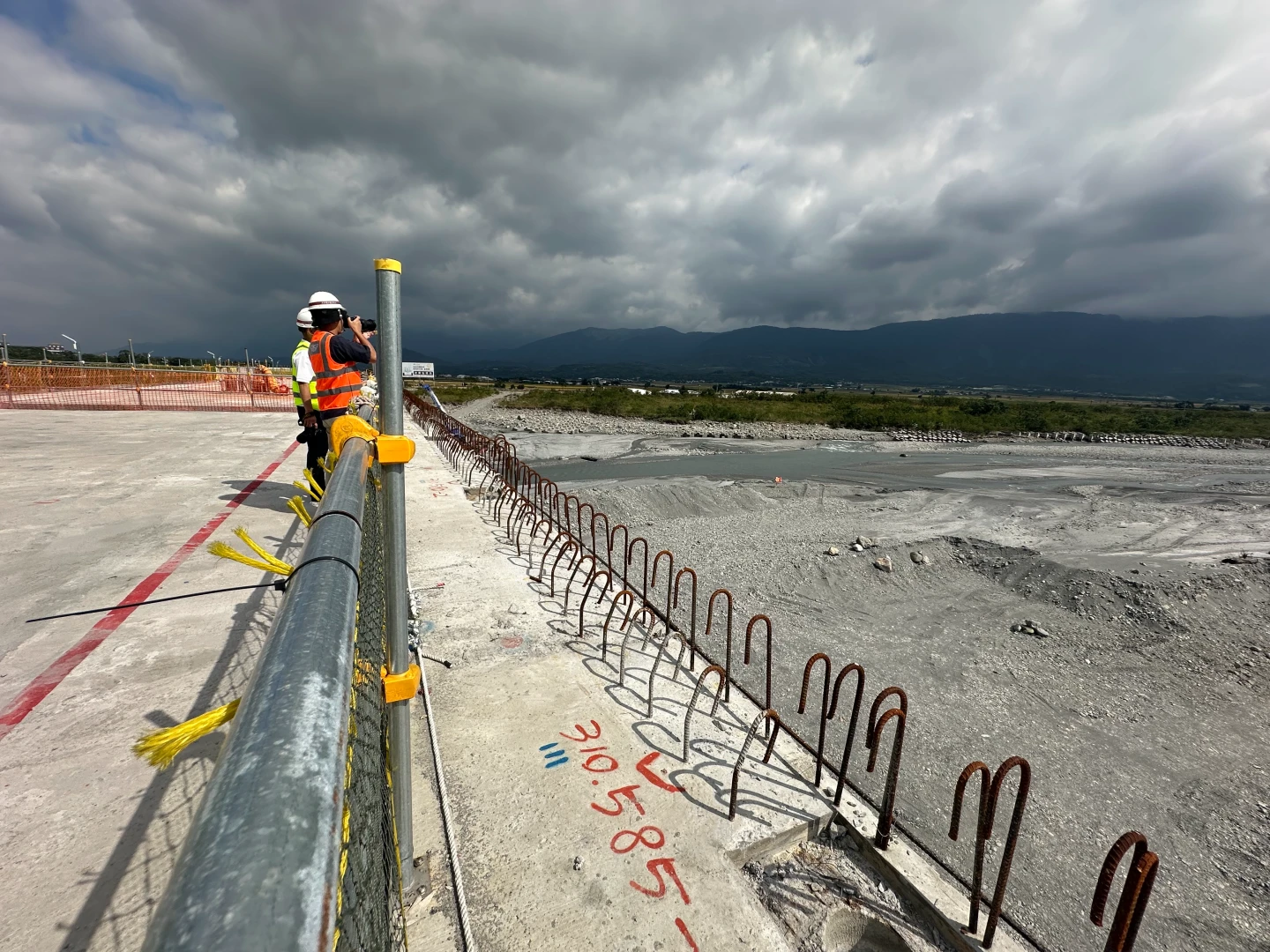 林進芳也分享,池上大橋的施工遭遇困難之處在於,2024年歷經凱米、山陀兒、康芮、天兔颱風造成卑南溪水位暴漲,施工便道遭沖毀,嚴重影響主要徑施工;而2025年薇帕颱風外圍環流豪雨,楊柳、樺加沙颱風,導致池上大橋工區災情,2年歷經7個颱風。