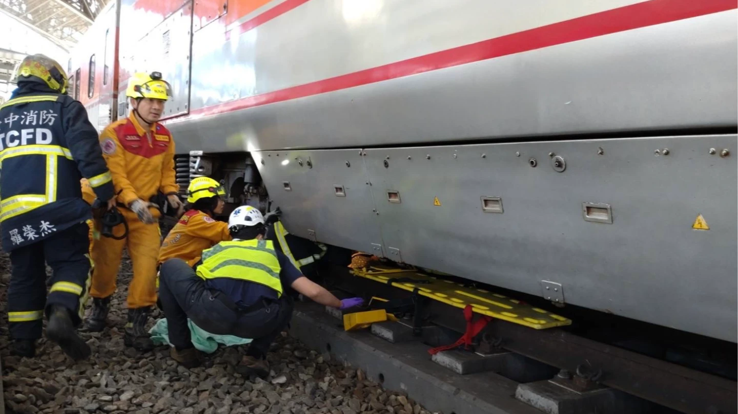 消防人員在10點38分抵達現場,發現一名75歲婦人被壓在自強號下方,由於車廂底下相當昏暗,消防人員以照明確認婦人位置,小心翼翼協助脫困,經初步檢視婦人肢體擦傷、頭部撕裂傷、意識不清,當場施以救護處置後,送往中國醫藥大學附設醫院救治。