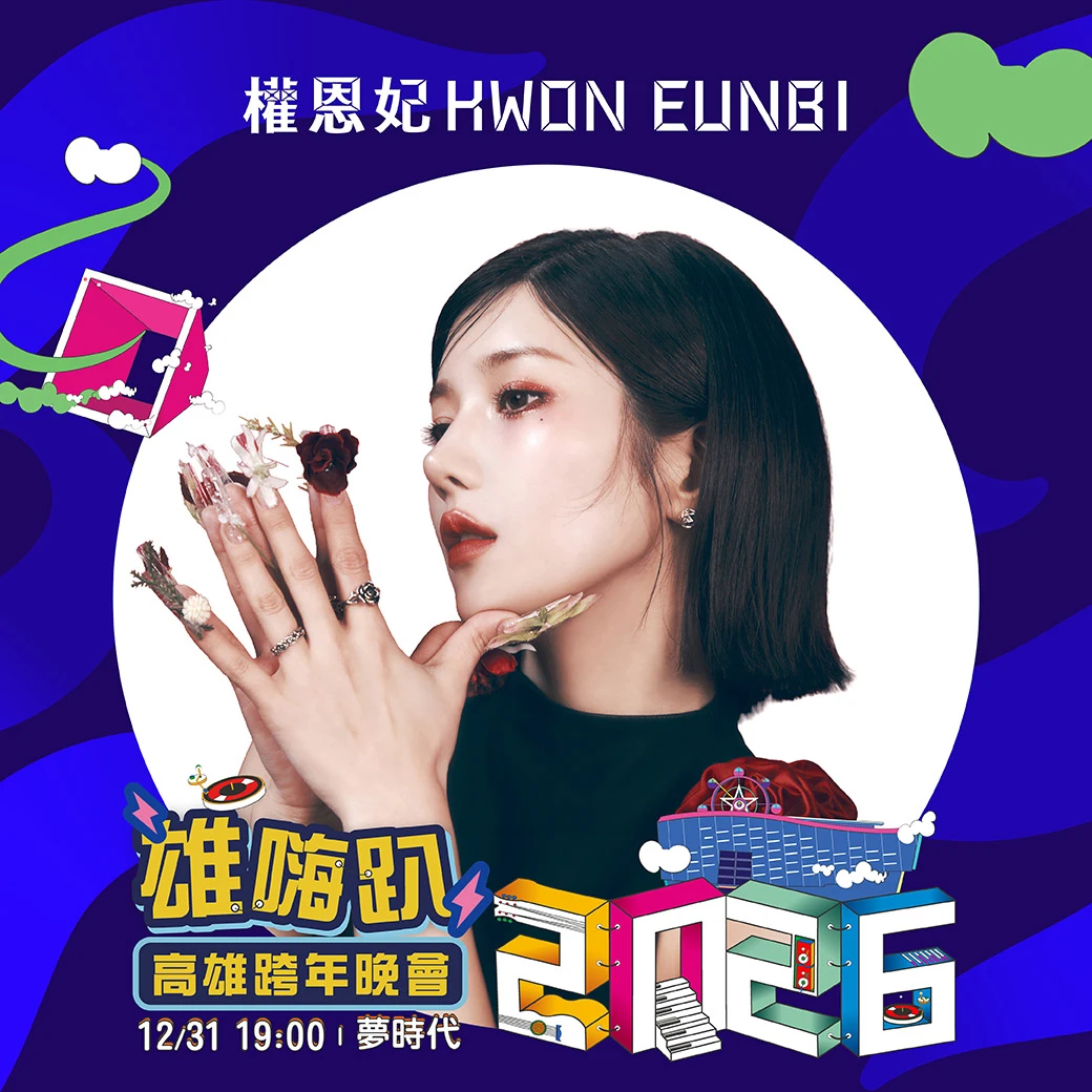 高雄跨年晚會將在夢時代時代大道登場,今年主打「2026雄嗨趴」,卡司陣容堅強,邀請到韓國「水彈女神」權恩妃(Kwon Eun-Bi)首次降臨港都,「2026雄嗨趴」主持陣容由陳漢典、林葦妮及阿本共同擔綱。演出卡司金光閃閃,包括Lulu黃路梓茵、告五人、八三夭、鳳小岳&壓克力柿子、熊仔、滅火器、芒果醬 Mango Jump、陳忻玥、鼓鼓 呂思緯、邱淑蟬、洪暐哲、AcQUA源少年、Wing Stars、Ponay 的原式大樂隊、Angie 安吉等多組實力派藝人輪番上陣。