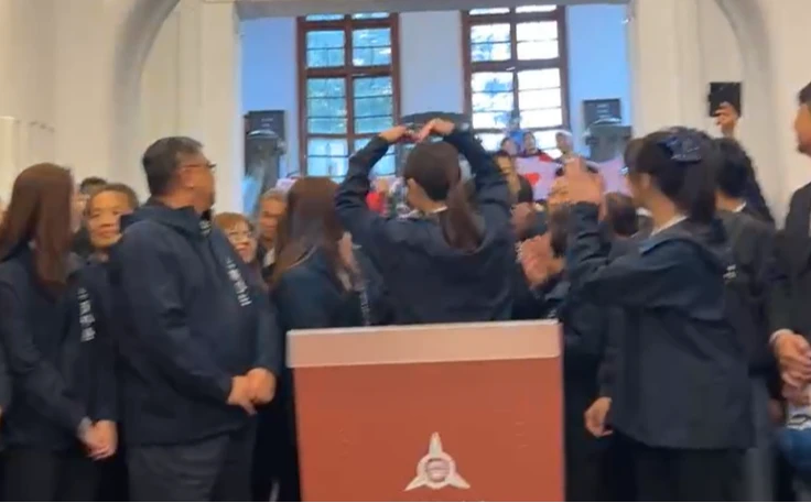 【記者盧麗蓮/綜合報導】新竹市長高虹安任立委時期涉貪助理費案,日前二審逆轉判貪污無罪,改依偽造文書罪判刑6月徒刑,得易科罰金。停職1年5個月的高虹安今(18日)復職,讓新竹市政府門口水洩不通,現場湧入大批記者和支持者,場面一度混亂。高虹安感動地收下花束,還對大家比出「愛心手勢」,一句「我回來了」,更吸引上萬人在現場直播搶看。