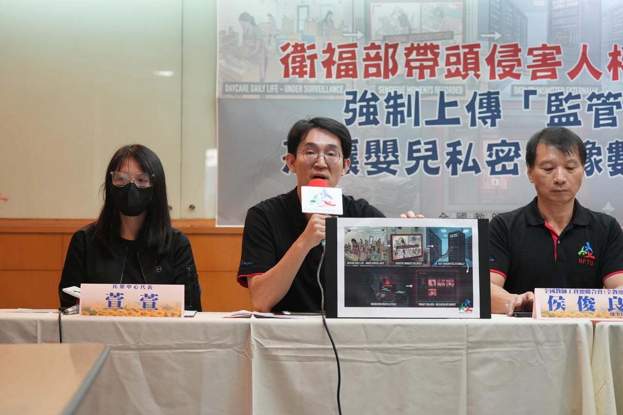 全教總幼教委員會主委楊逸飛說,監管雲要求全國的托嬰中心,將監視器上傳雲端保留,嬰幼兒生活、如廁、吃飯、換尿布等畫面,都會被上傳雲端,甚至還要被抽查,不僅如此,現在托嬰中心監視器都被要求無死角拍攝,托嬰中心老師也容易春光外洩,這些畫面都會被上傳雲端,侵害人權跟隱私。