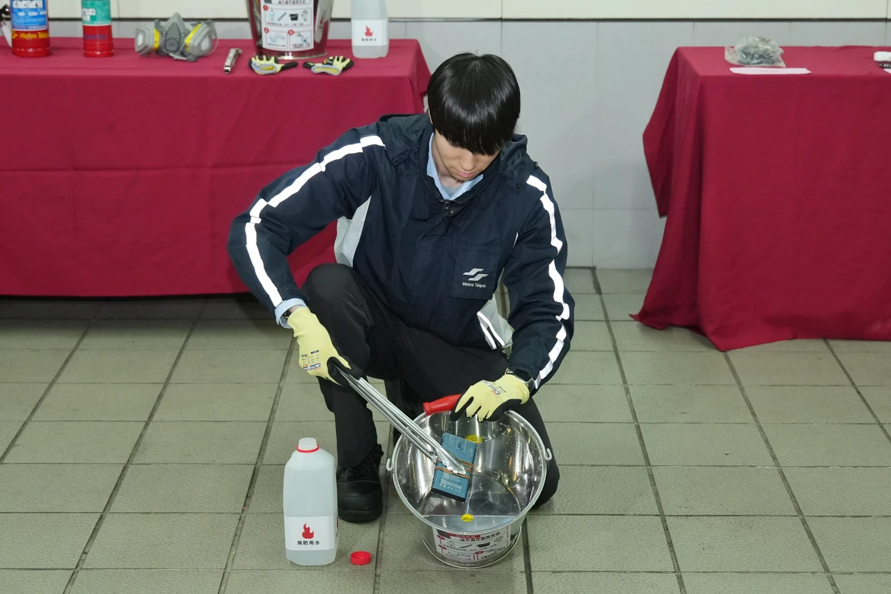 為了應對潛在的火災風險,北捷已在全線117個車站配置了緊急應變工具,包含鐵桶、夾子、耐熱手套及瓶裝水。北捷指出,根據消防專業建議,鋰電池若發生熱失控,最佳處置方式是將其完全浸泡於水中快速降溫。若發生自燃或冒煙,站務人員將第一時間利用配備進行處置,並通報警消單位。