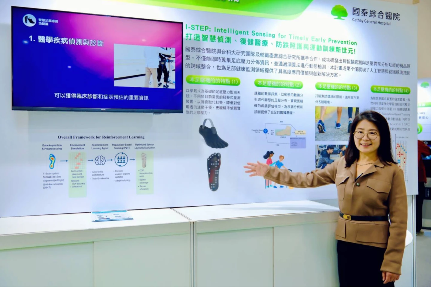 國泰醫院指出,這項技術不僅展現人工智慧與紡織感測技術的跨域整合,也為足部健康監測領域提供具高度應用價值與創新解決方案,未來可望應用於臨床病人的復健與步態監測、高齡族群跌倒預防與風險預測、運動員足部壓力評估與訓練回饋,及智慧穿戴式健康照護市場等領域。
