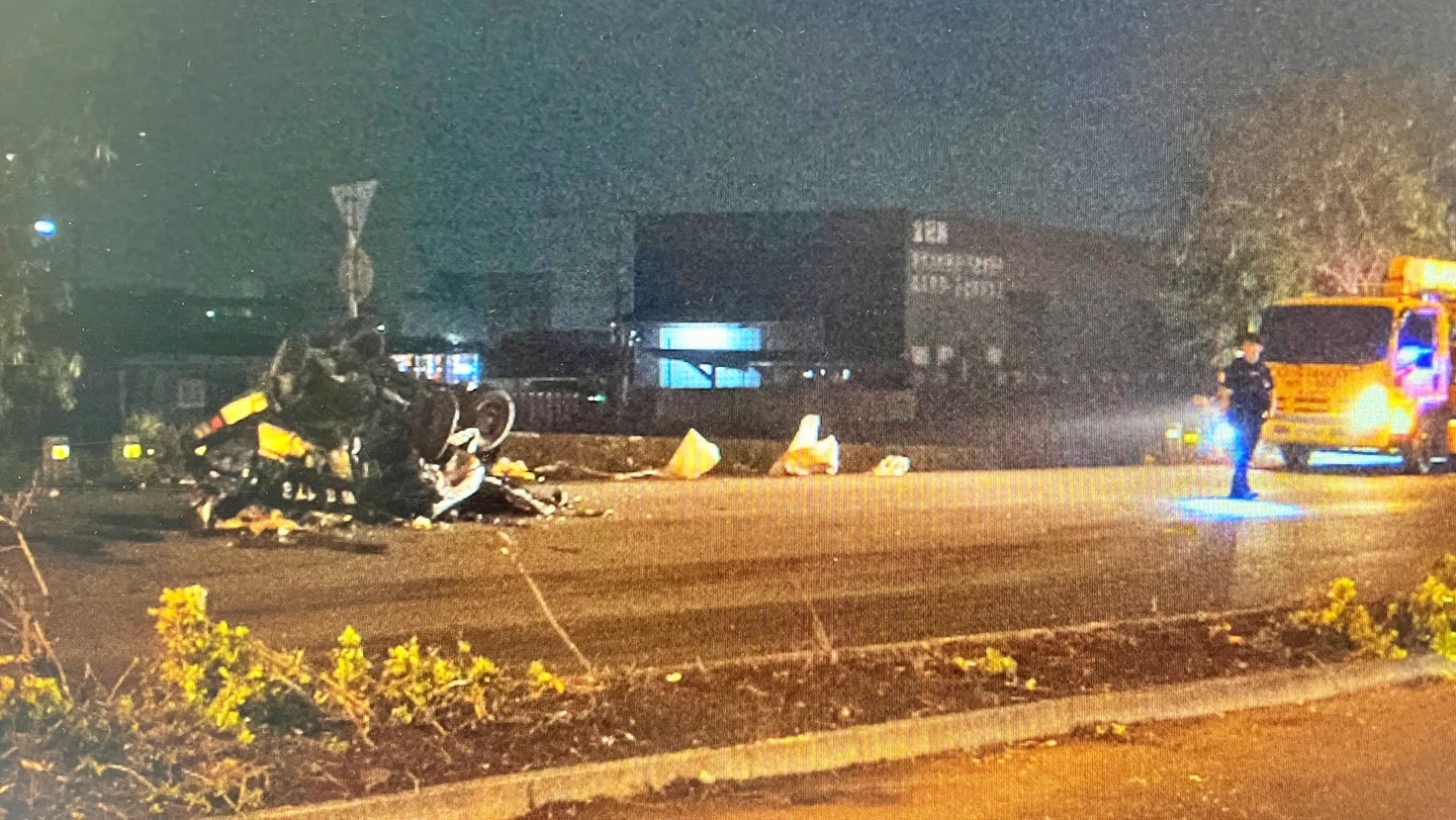 廂型車遭追撞翻覆成爛鐵,現場怵目驚心。警方提供 zoomin