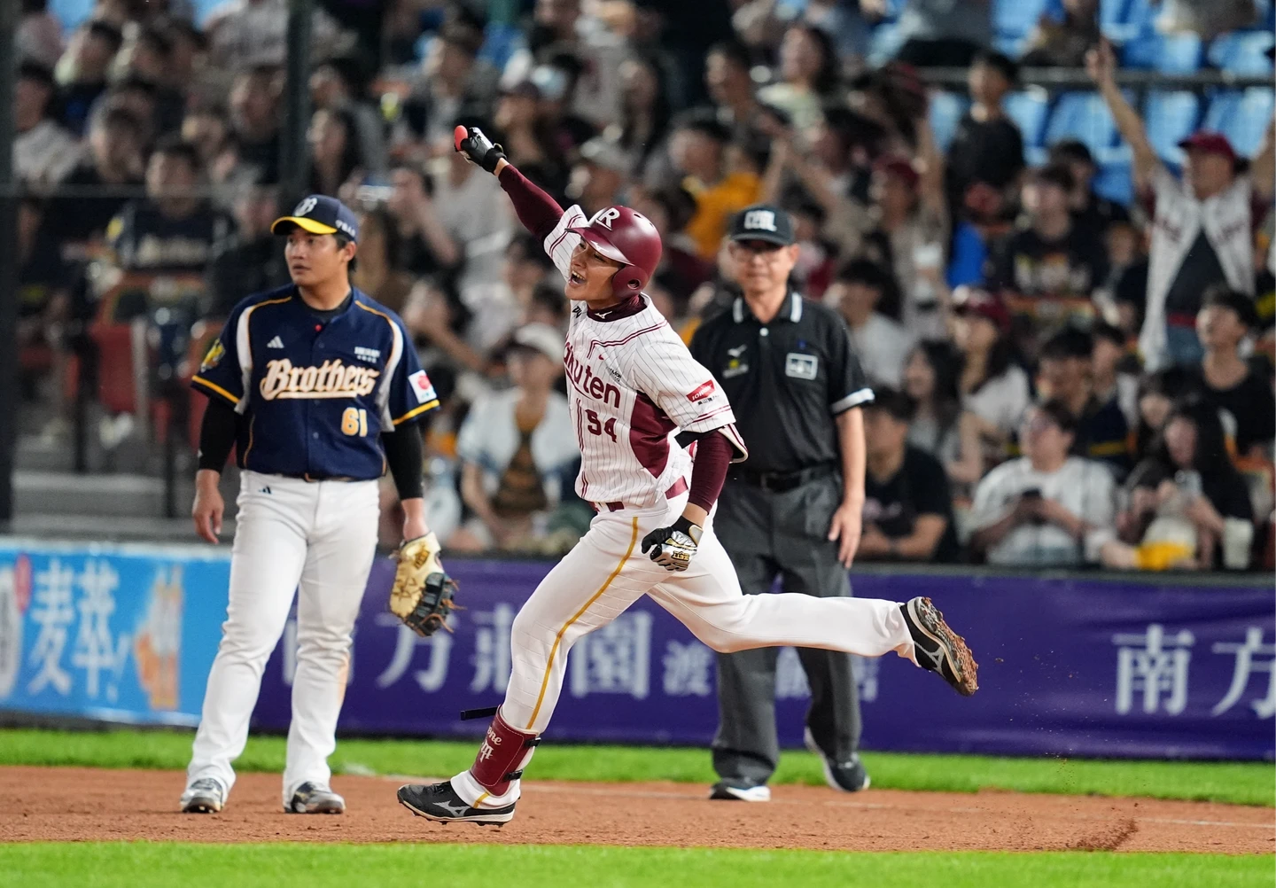 樂天桃猿內野手馬傑森在第986個打席敲出生涯首轟。樂天桃猿提供 zoomin