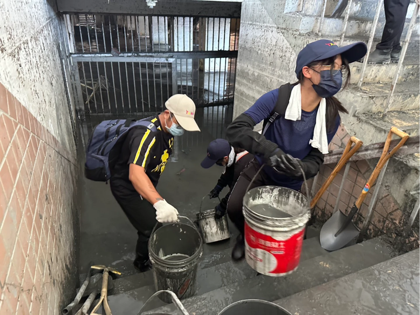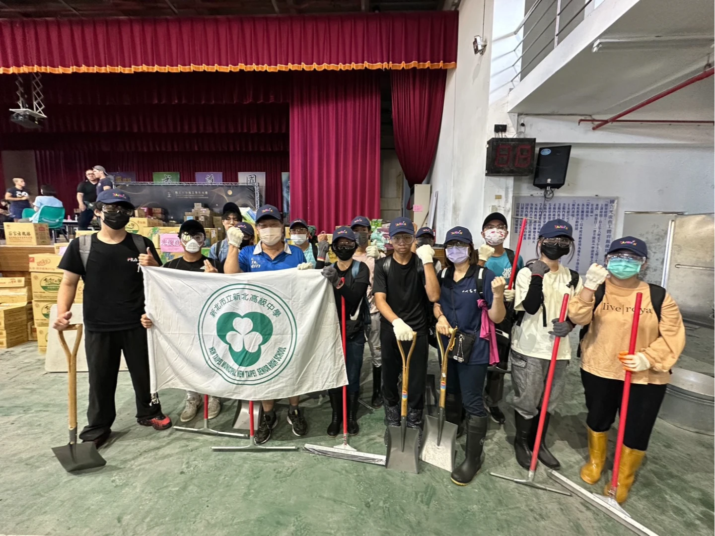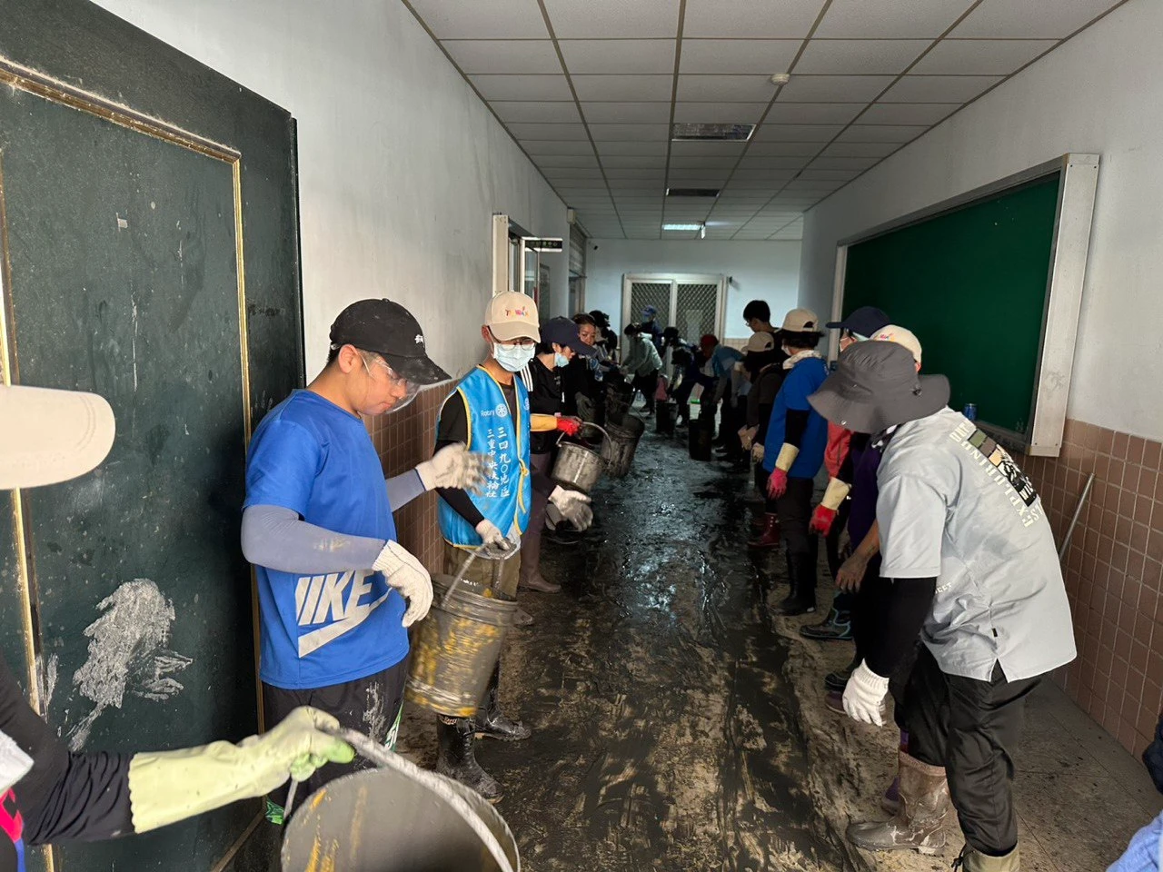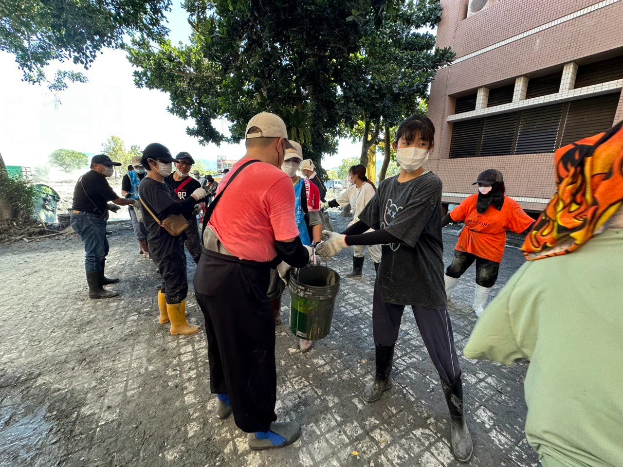 有片|新北23校近百師生挺進災區!化身鏟子超人 協助光復國中、商工復原校園