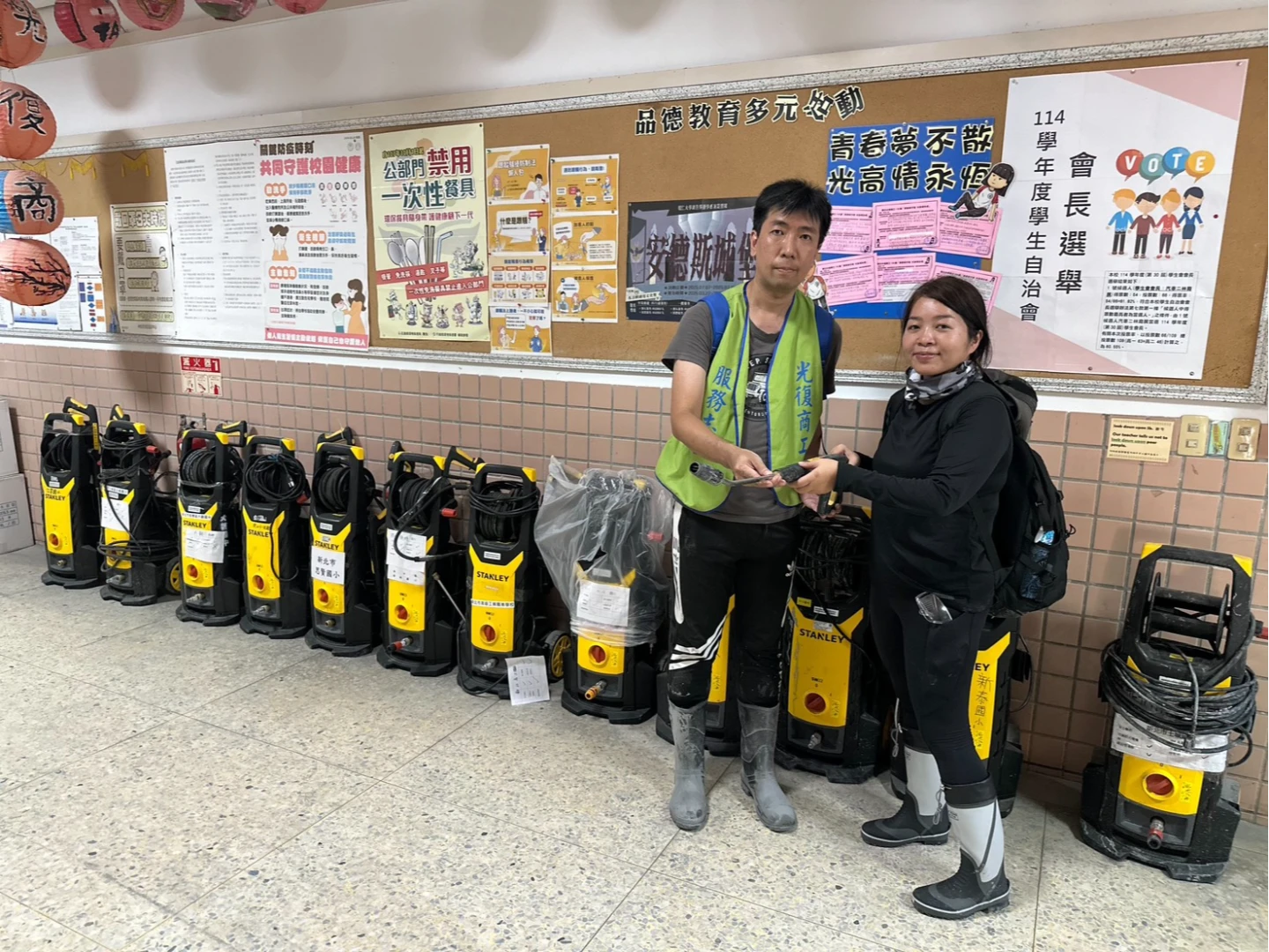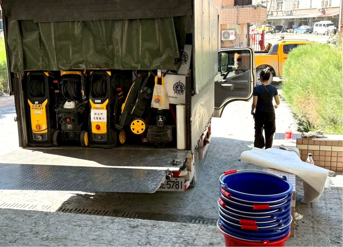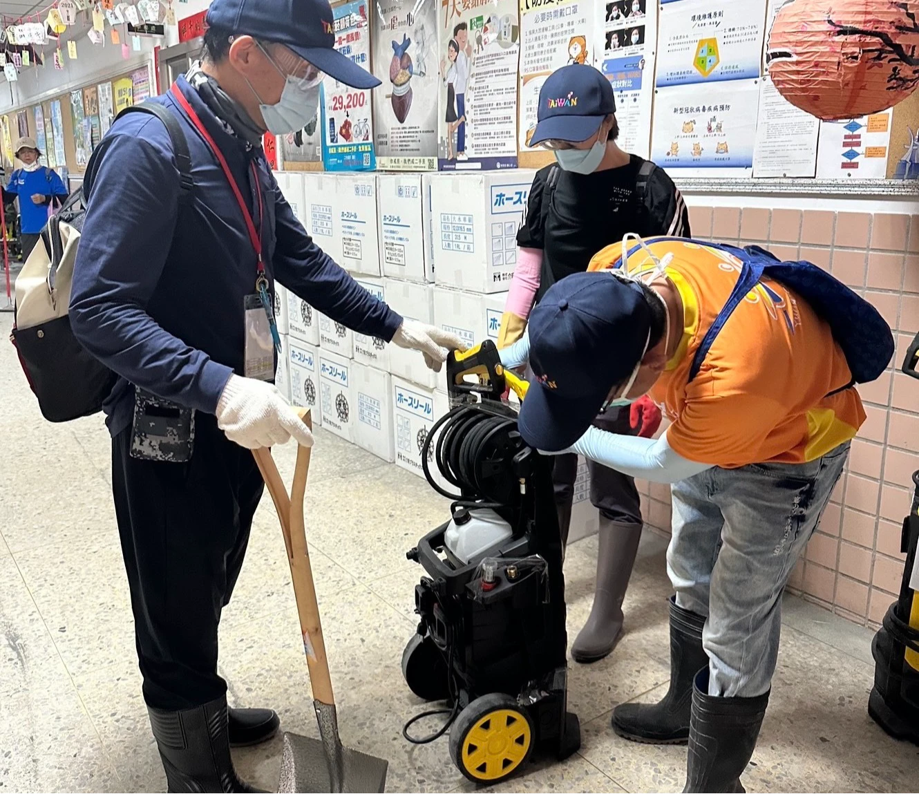 張明文說,新北市過去也曾歷經颱風淹水與泥沙淤積的挑戰,深知災後復原的艱辛,因此在得知花蓮受災情況後,立即調度各校的高壓清洗機與相關設備,同時號召志工團隊投入清理。