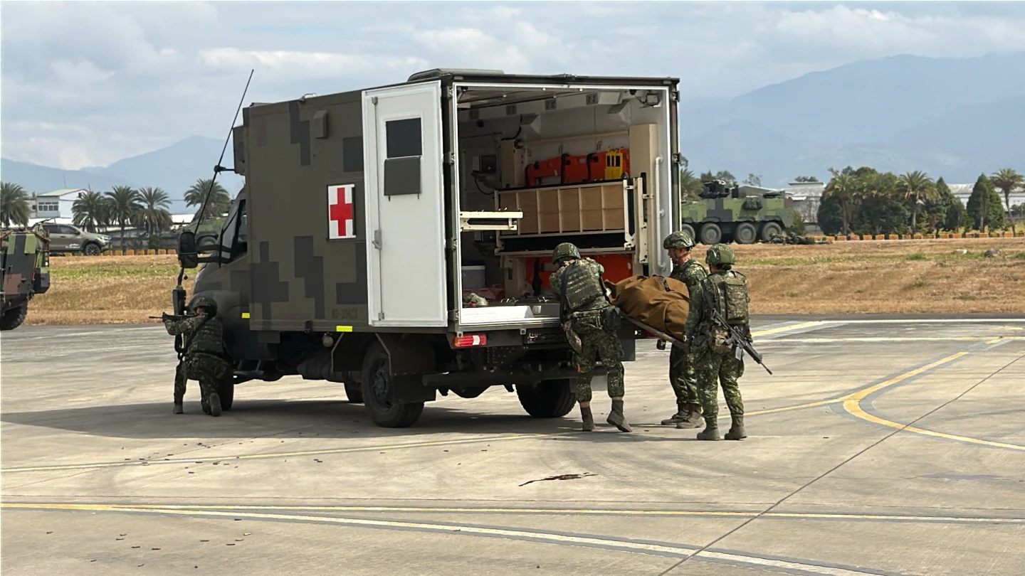 【記者蘇柏銓/台北報導】國軍115年度春節加強戰備今日登場,首站來到新社龍祥營區,此次操演是海馬士多管火箭成軍後,首度和其他友軍參加春巡。另外,國軍也展示野戰型救護車等新式裝備,更首度派遣多架次攻擊型無人機投入操演,成功摧毀目標。