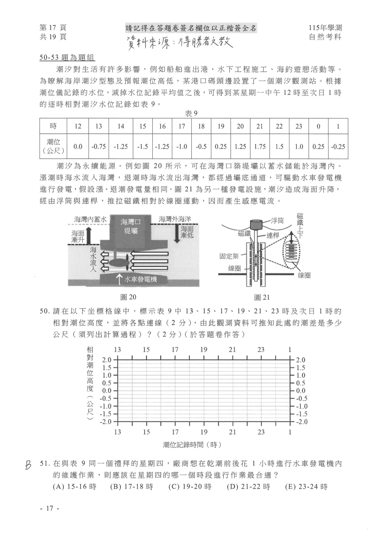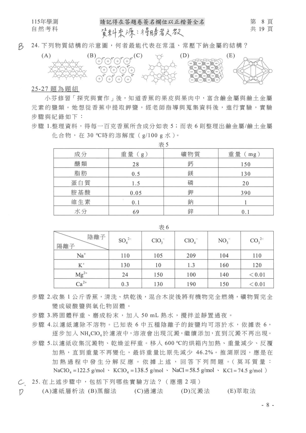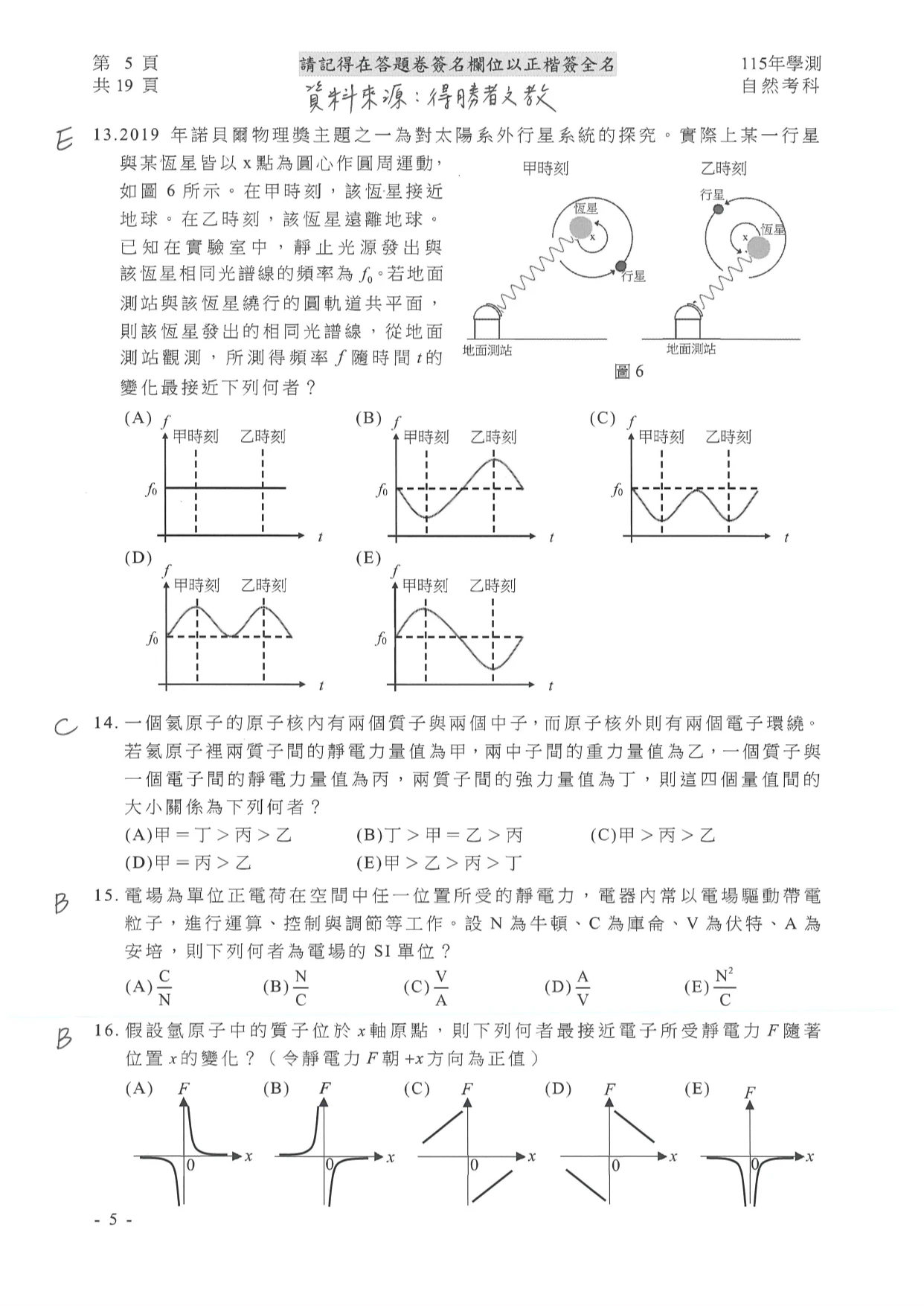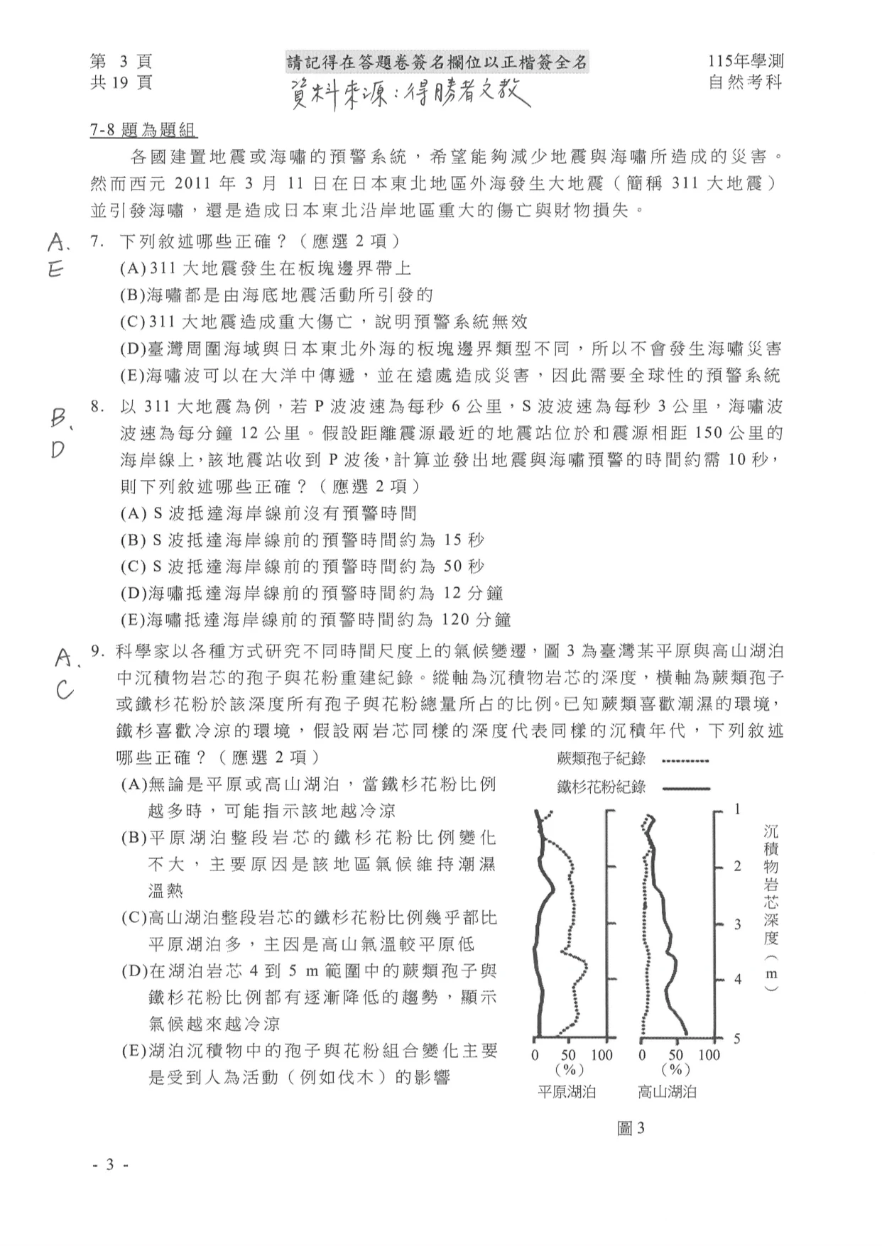 學測自然參考解答如下: