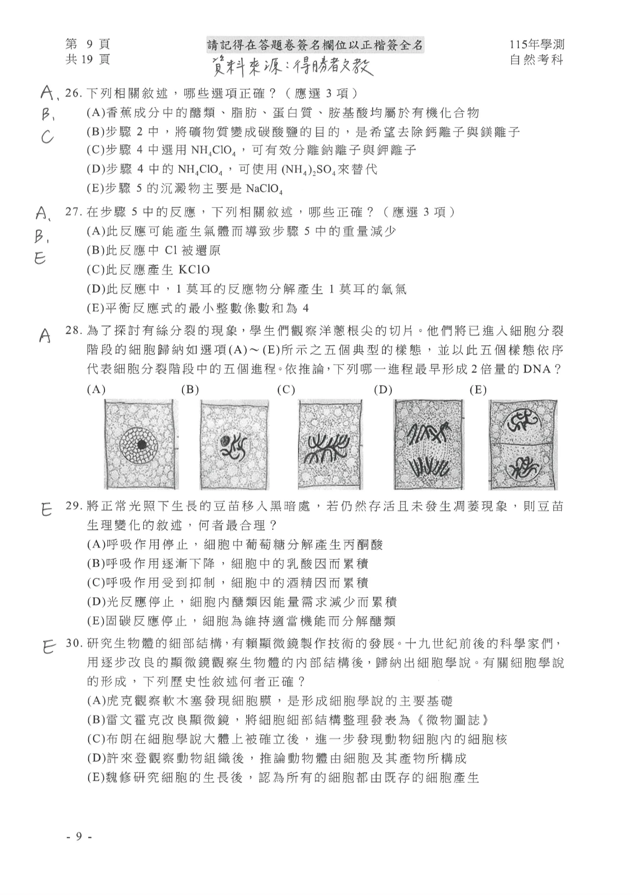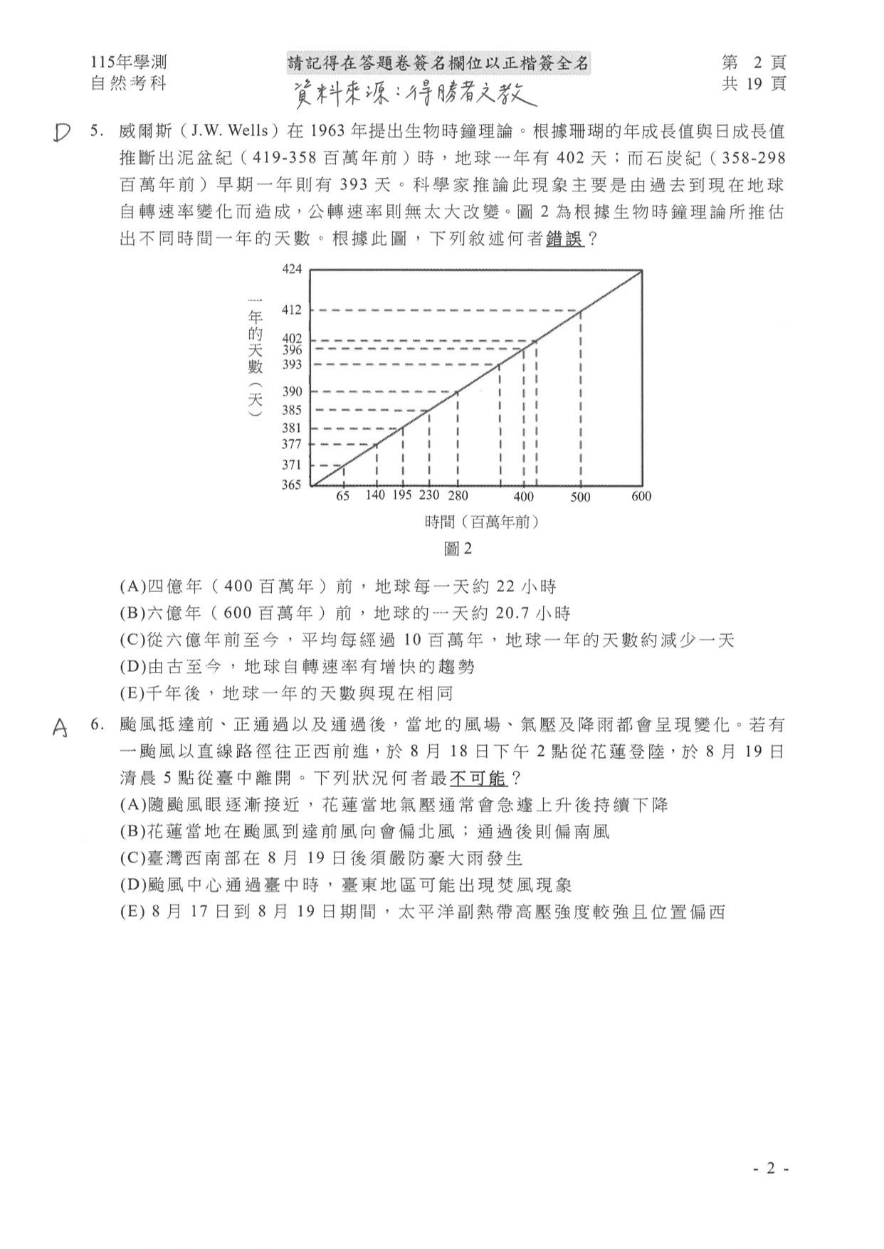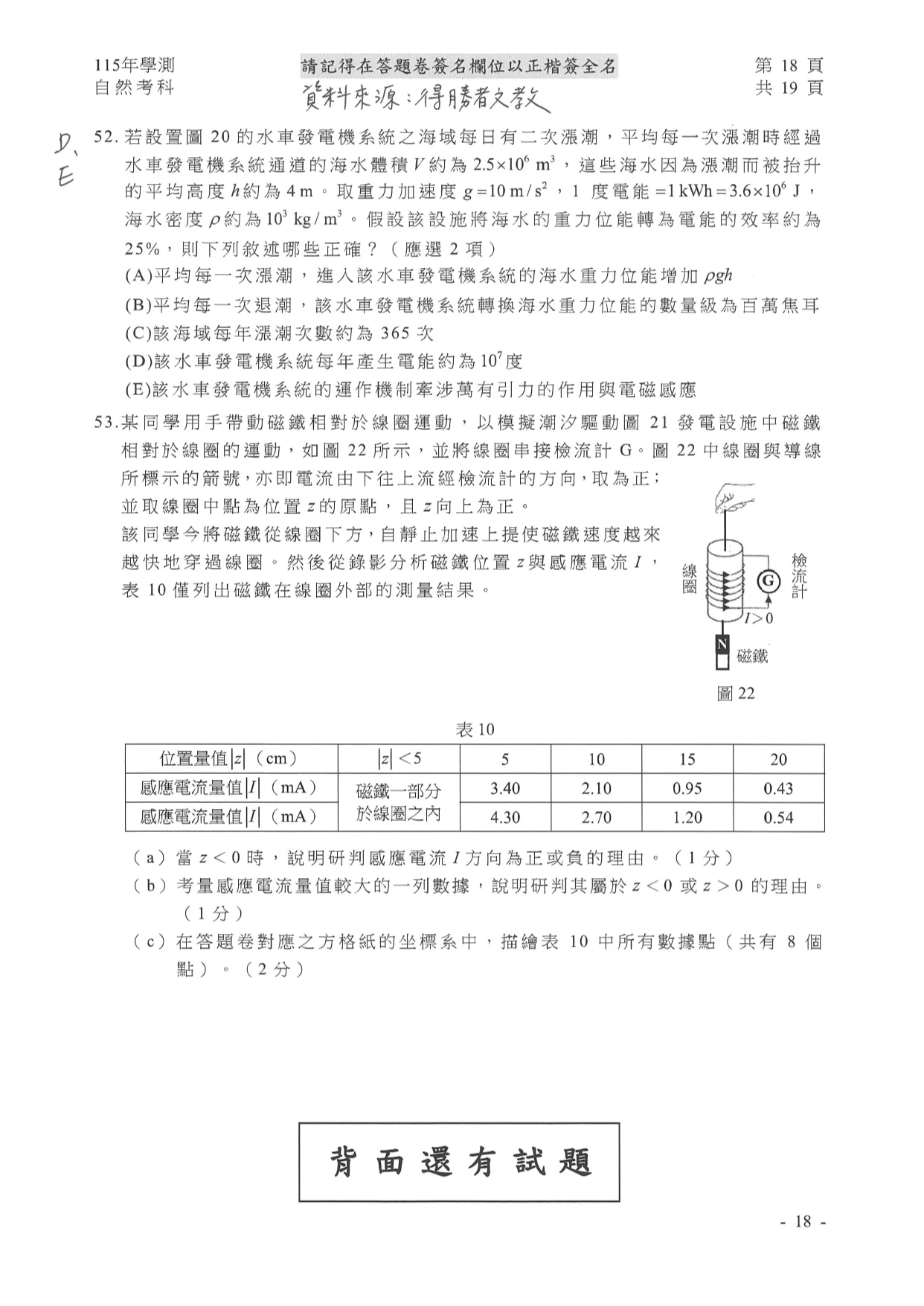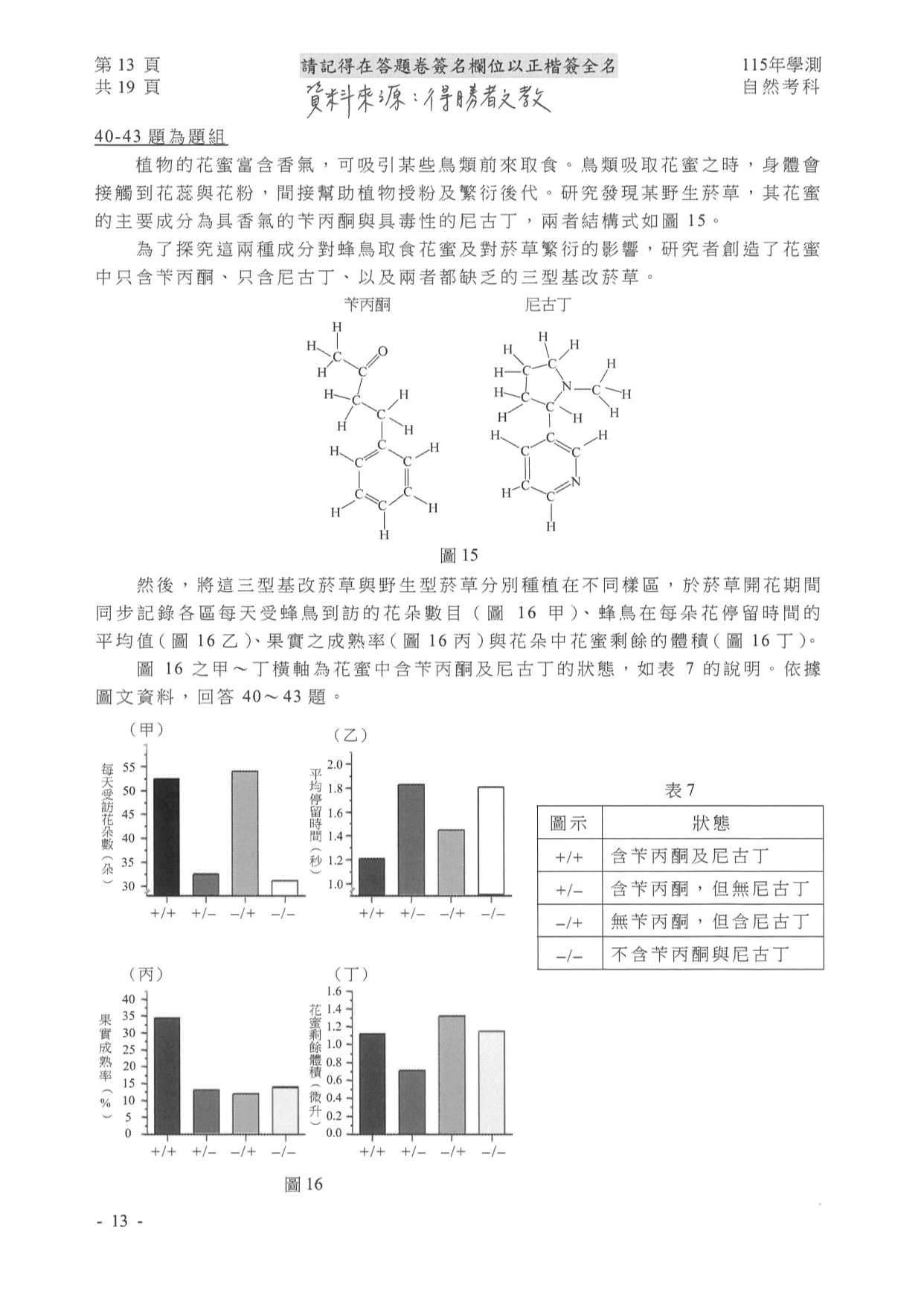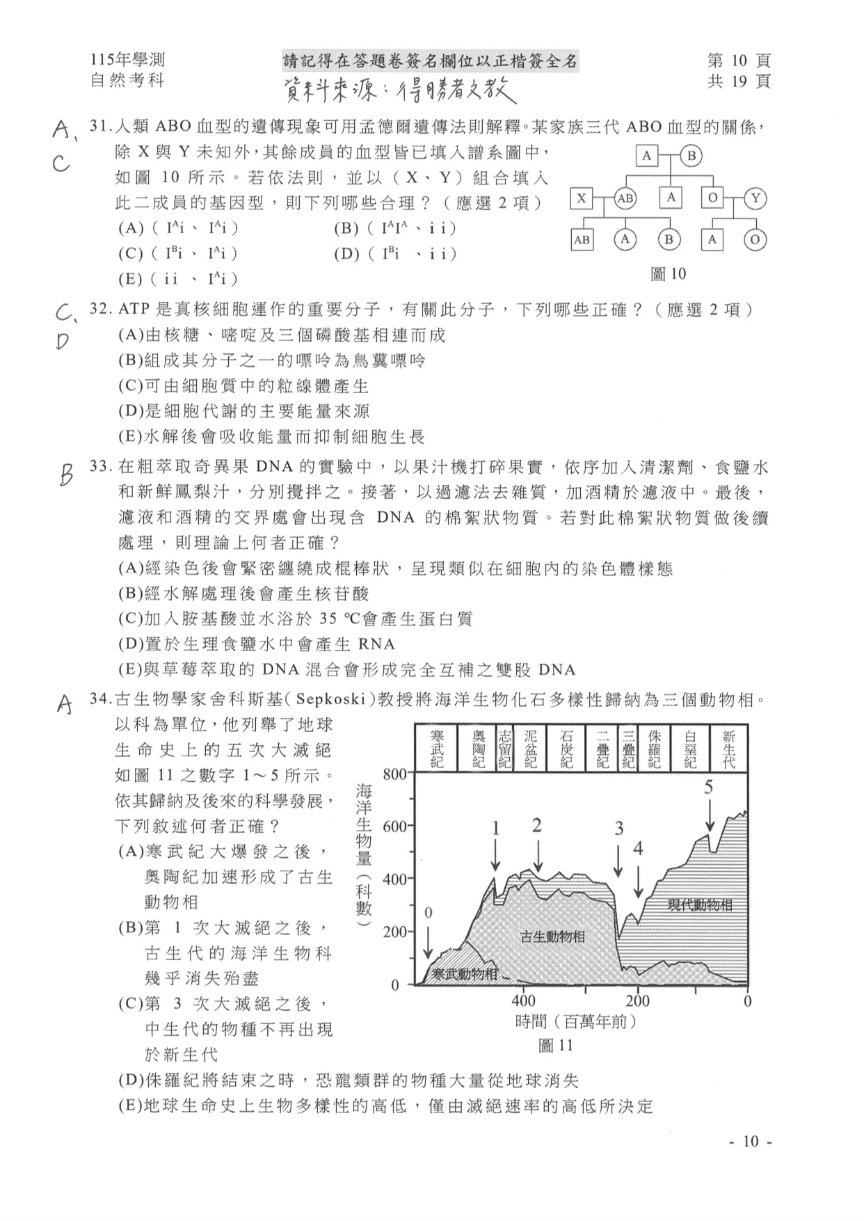 學測自然參考解答如下: