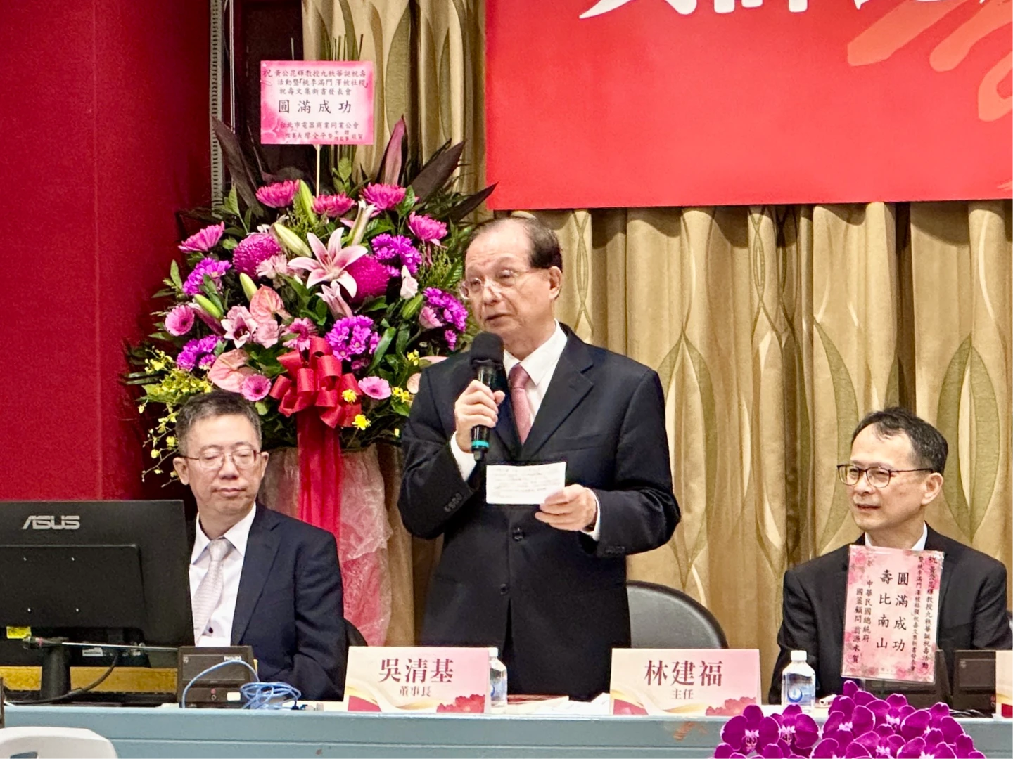 台師大教育系、台北市賈馥茗教授教育基金會今天舉行台聯前主席黃昆輝90嵩壽祝壽活動暨新書發表會,教育部前部長吳清基、潘文忠、立法院前院長王金平、雲林縣長張麗善等人均出席。