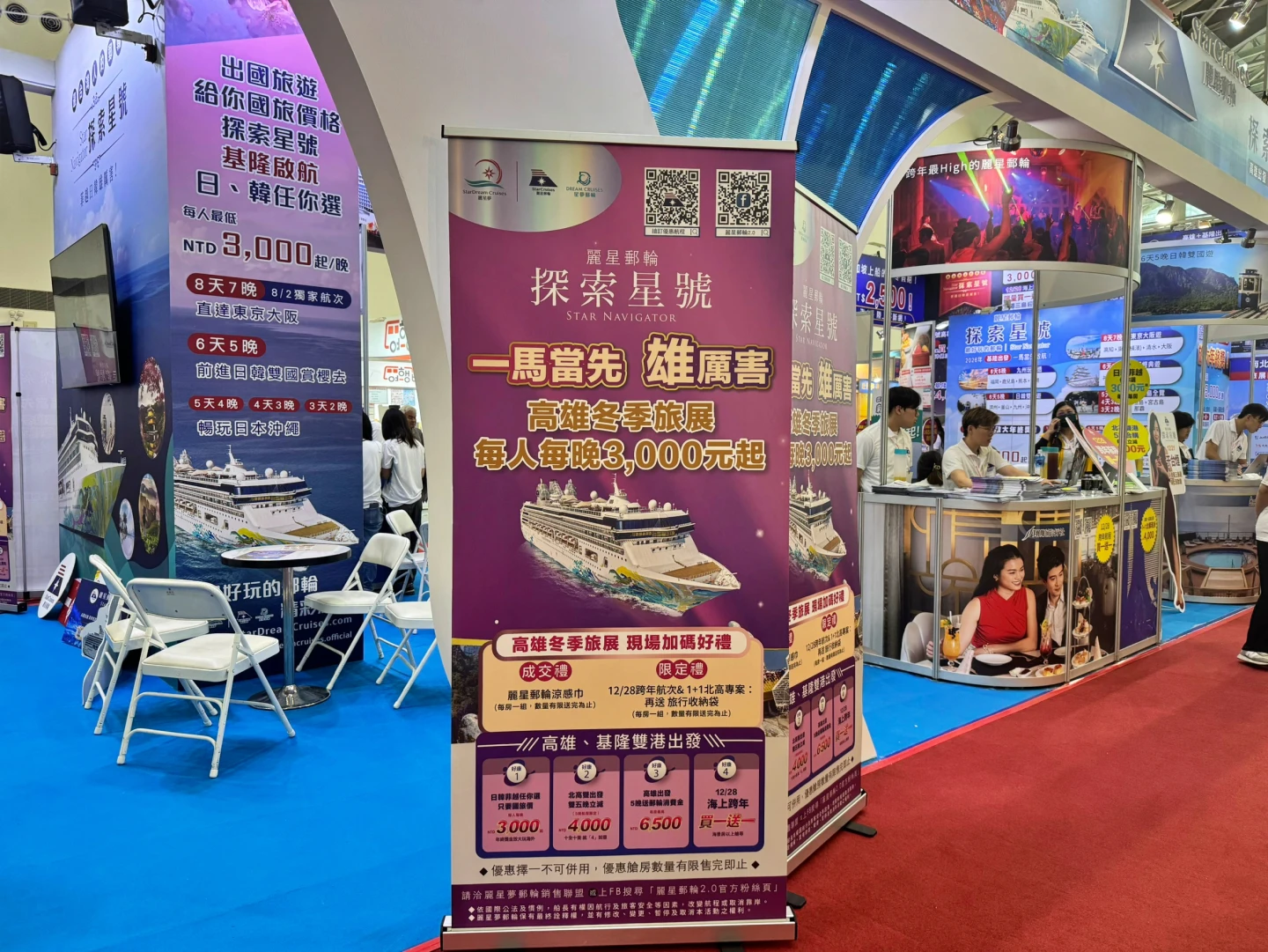 最吸睛的是,老字號麗星郵輪打出「用國旅價,住郵輪、玩海外」,平均每人每晚3千元起,不僅規劃精選航次「買一送一」,也有主題航次于台煙專場演唱會。旅展期間加碼「與家人一起北高雙港合購立減4000元」、「最高6500元郵輪消費金」等多重好康,讓客人把年終獎金放大,成就夢想假期。