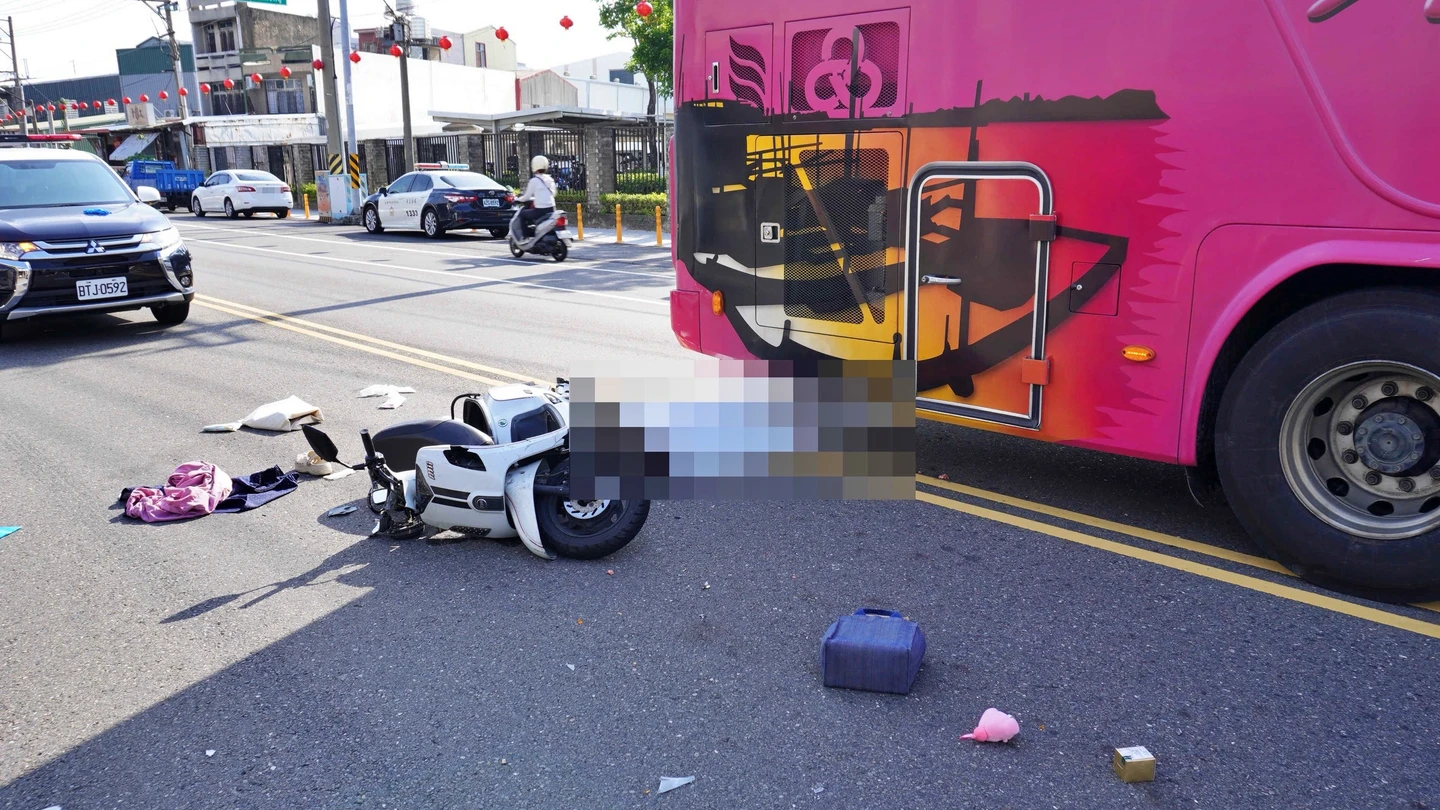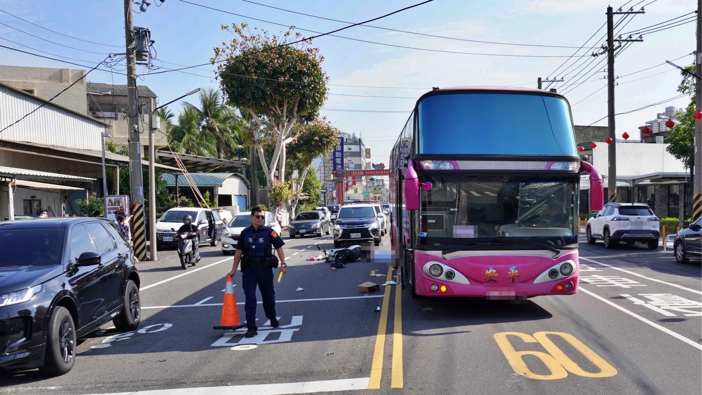 台南市消防局獲報該起車禍後,出動1車4人趕往,到場發現騎士鄭女倒在遊覽車車尾處,疑頭胸重創,明顯死亡未送醫。