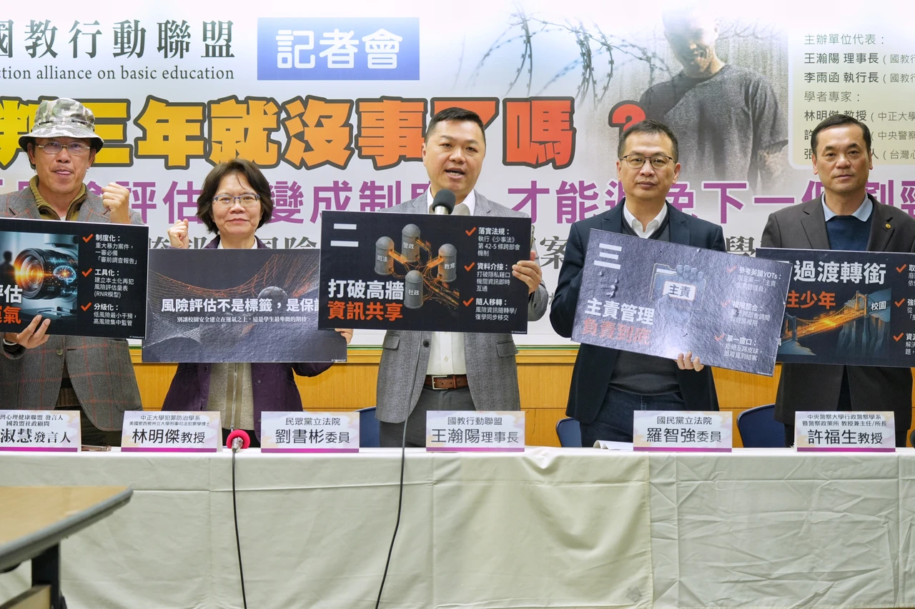 【記者王良博/台北報導】新北國中生割頸案去年底二審宣判,刑期從一審的9年、8年,加重為12年與11年,國教行動聯盟今(13)日表示,重要理由之一是補做「審前調查報告」,呼籲應把「審前調查報告」制度化,少年犯罪在量刑前,必須完成科學評估與處遇建議,並呼籲升級過渡性教育。