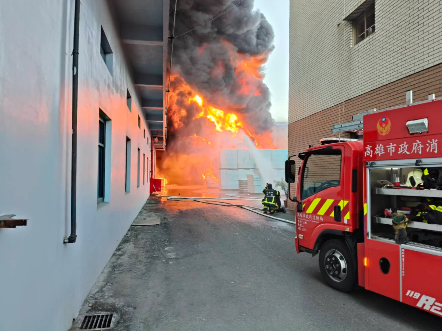 陳其邁說,該工廠製程區的加熱爐,在今天上午11點30分左右發生不明原因爆炸,波及包括聚丙烯跟聚苯乙烯等原料及成品,造成整個工廠的燃燒。消防局獲報總共派遣了43台的消防車,104位消防弟兄來全力搶救。