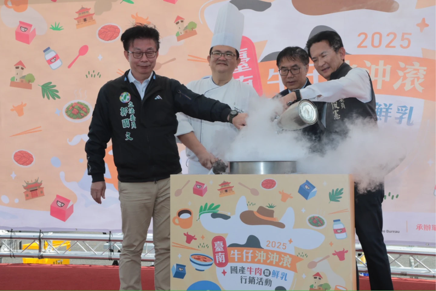 【記者王勇超/台南報導】「2025牛仔沖沖滾」國產牛肉暨鮮乳行銷活動,今日在善化啤酒廠熱鬧登場,濃醇鮮乳與現切溫體牛肉香氣四溢,吸引上千名民眾共襄盛舉;現場集結多家牛肉湯名店與豐富畜產市集,讓民眾一邊品嚐台南特色美食,一邊享受結合農產、文化與歡樂的周末盛典。