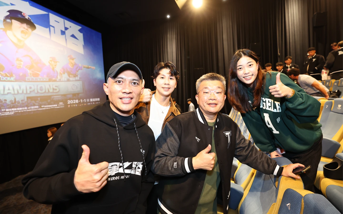 已經7刷《冠軍之路》的蔡其昌則笑說,每一次觀看都有不同感受,提到片中曾幽默記錄球員黃恩賜差點因比賽行程無法完成婚事,蔡其昌也在現場打趣詢問球員:「有沒有人要結婚的?先把婚事處理好,免得到時候又要做人形立牌。」他也期盼,透過這部紀錄片,讓更多人喜歡棒球、走進球場,持續為台灣棒球注入能量。