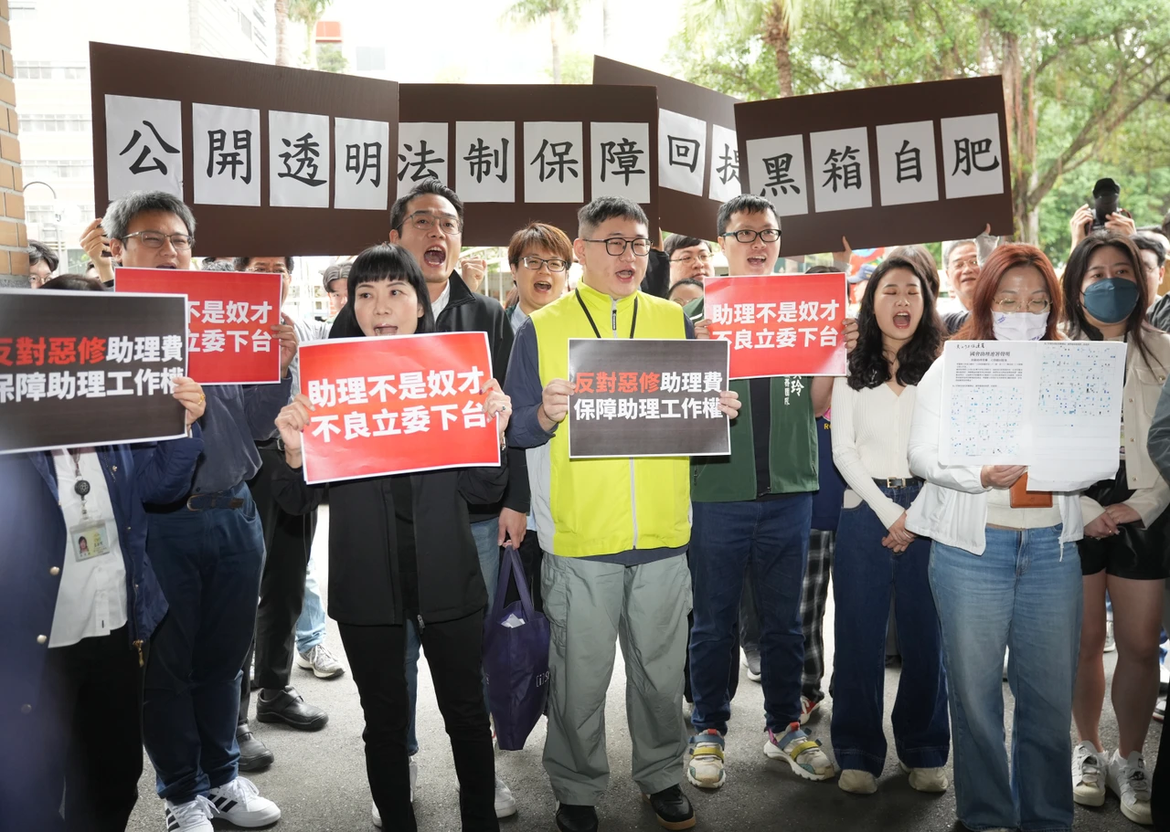 【記者蘇柏銓/台北報導】藍委陳玉珍修法「助理費除罪化」引爆國會助理反彈,迄今連署近300人要求撤回,今早更聚集立法院大門表達抗議,陳玉珍現身抗議現場,要正面回應訴求,但才講到「助理像家人」,就被助理撻伐罵「不要講幹話」,不過她繼續發言,坦言提案過程不夠周延、對於立委自肥部分也願意修改,更說「過程中的有任何的汙衊,我也承受」
