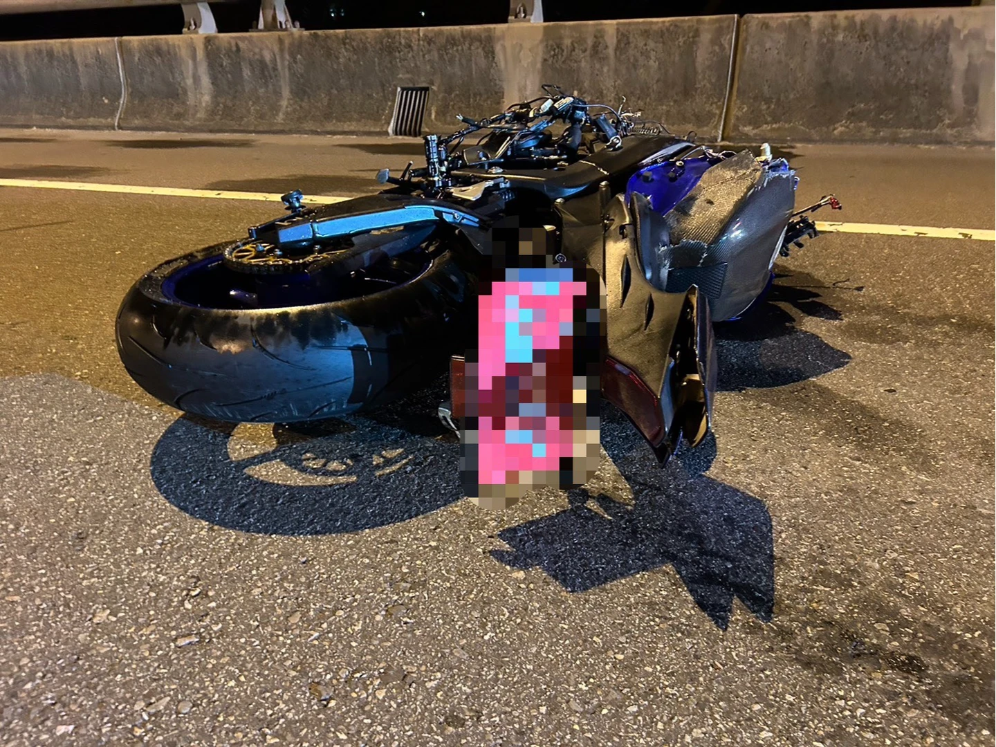 據悉,死者25歲陳女在文理補習班工作,昨天深夜11時許,她向父親表示要跟朋友到八里喝咖啡,隨後便騎乘紅牌重機外出。不料,昨晚騎到台61線3公里往八里方向,不慎失控自摔,陳女滑摔倒地。