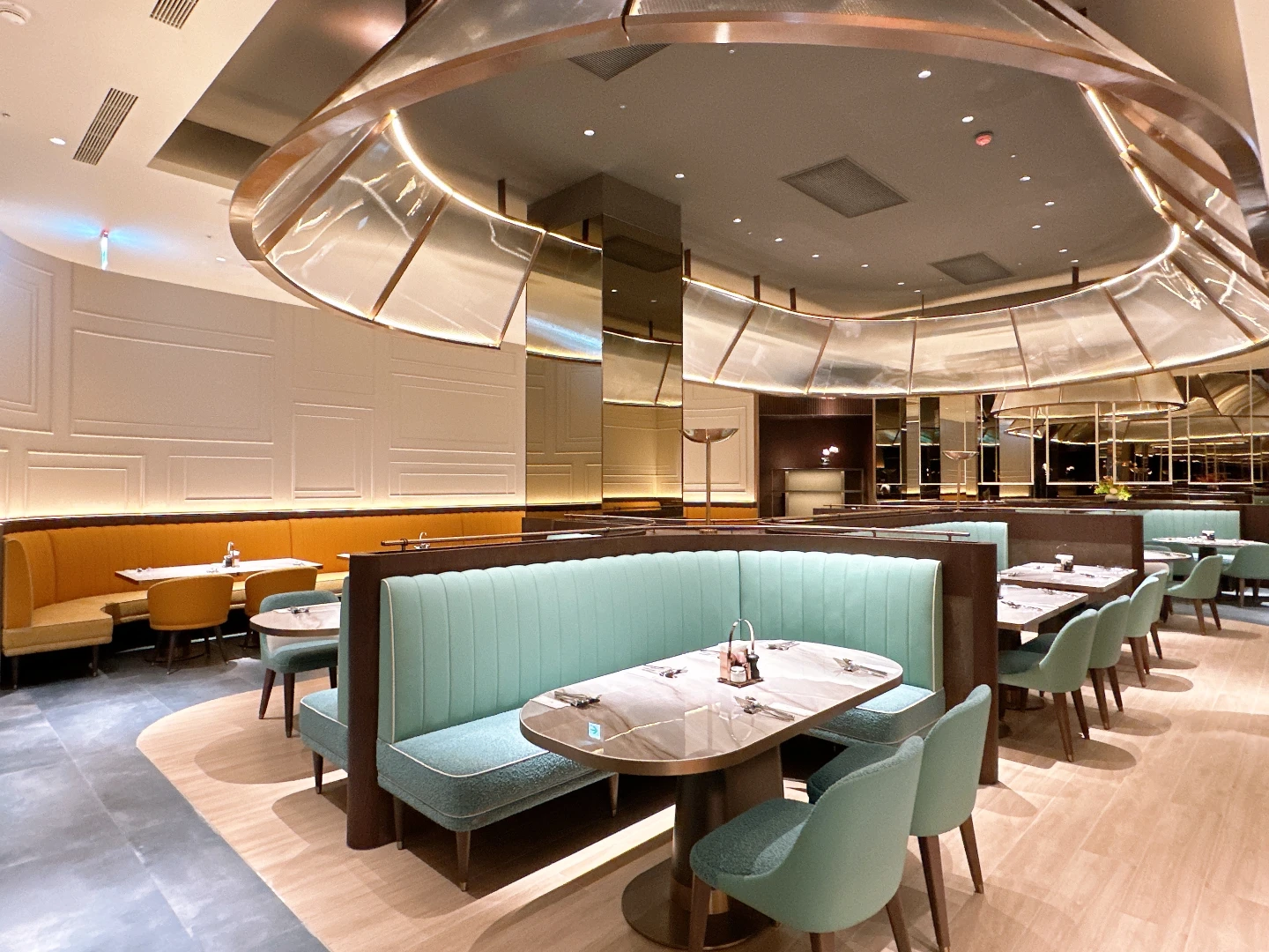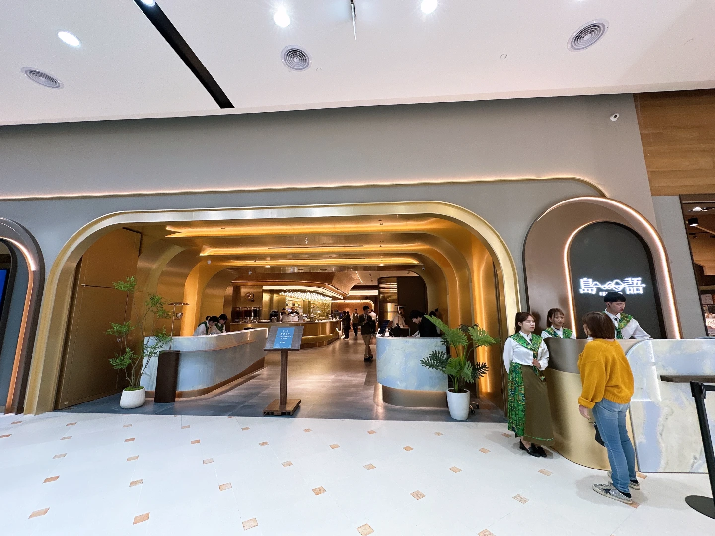 「島語」桃園台茂店廣達450坪,迎賓入口以洞穴為意象,開啟山海環繞的沉浸式體驗,座位數從原本的300個,減少為270個,讓客人擁有更舒適、寬敞的用餐區域,台茂購物中心也將原本餐廳前的其他專櫃全數撤離,提供島語作為候位區使用。