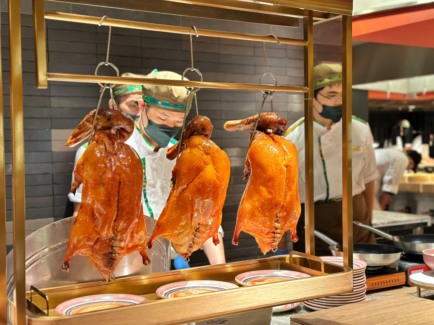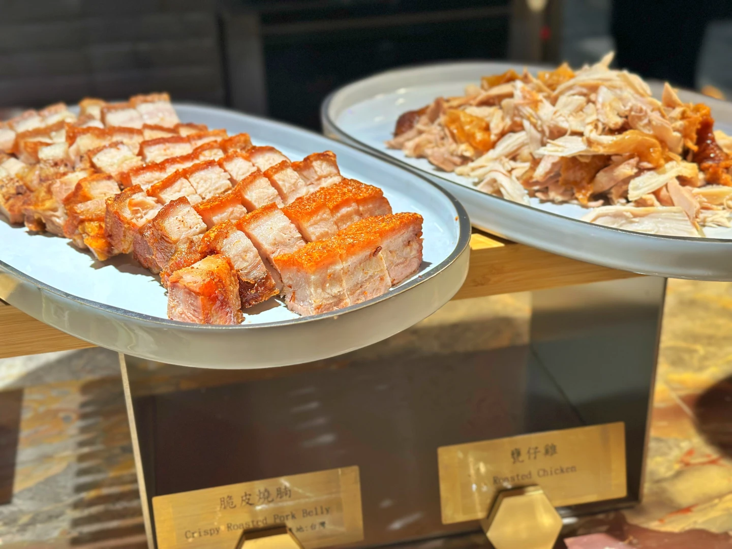「炙區」同樣有來自世界冠軍麵包師王鵬傑師傅之手的螺旋酥皮黃金玉米濃湯、可頌+法式松露野菇濃湯,以及新推出的「魚子醬蒜香帆立貝」。「膳區」新推出中式年節經典菜色「極品佛跳牆」,還有人氣美食片皮鴨、甕仔雞等。