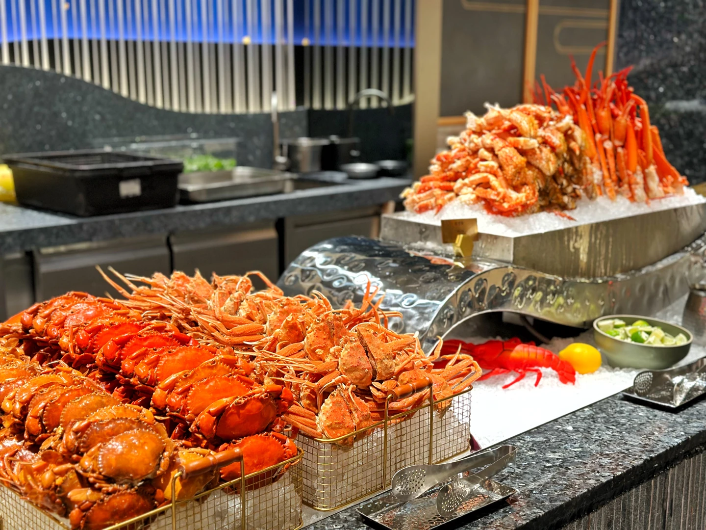 餐點方面,「島語」同樣設置沁、鮮、盛、爍、極、煲、膳、炙、繽9座島檯,最受饕客喜愛的島檯非「鮮區」海鮮台莫屬,台茂店新推出來自南極深海、數量珍稀的「雪蟹腳」,另供應肉質扎實飽滿的「野生沙公」、「紅蟹」、「松葉蟹」等海鮮。