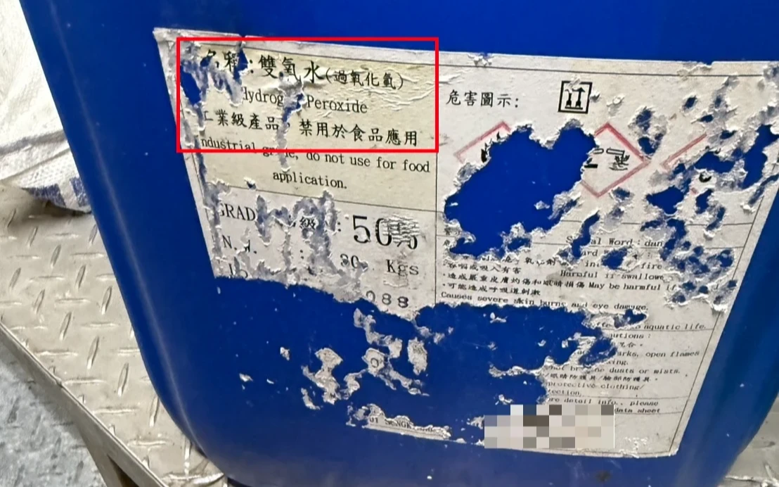 食藥署10月1日會同屏東地檢署、農業部動植物防疫檢疫署、保安警察第七總隊、法務部調查局高雄市調查處及衛生局,前往百威食品有限公司位於屏東縣之豬內臟清洗作業場所,發現多桶標示「工業級產品,禁用於食品應用」字樣的雙氧水,部分已為空桶,涉嫌使用工業級雙氧水加工豬腸。