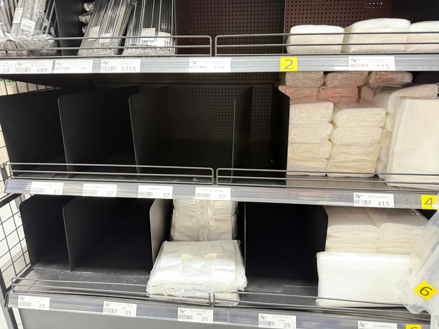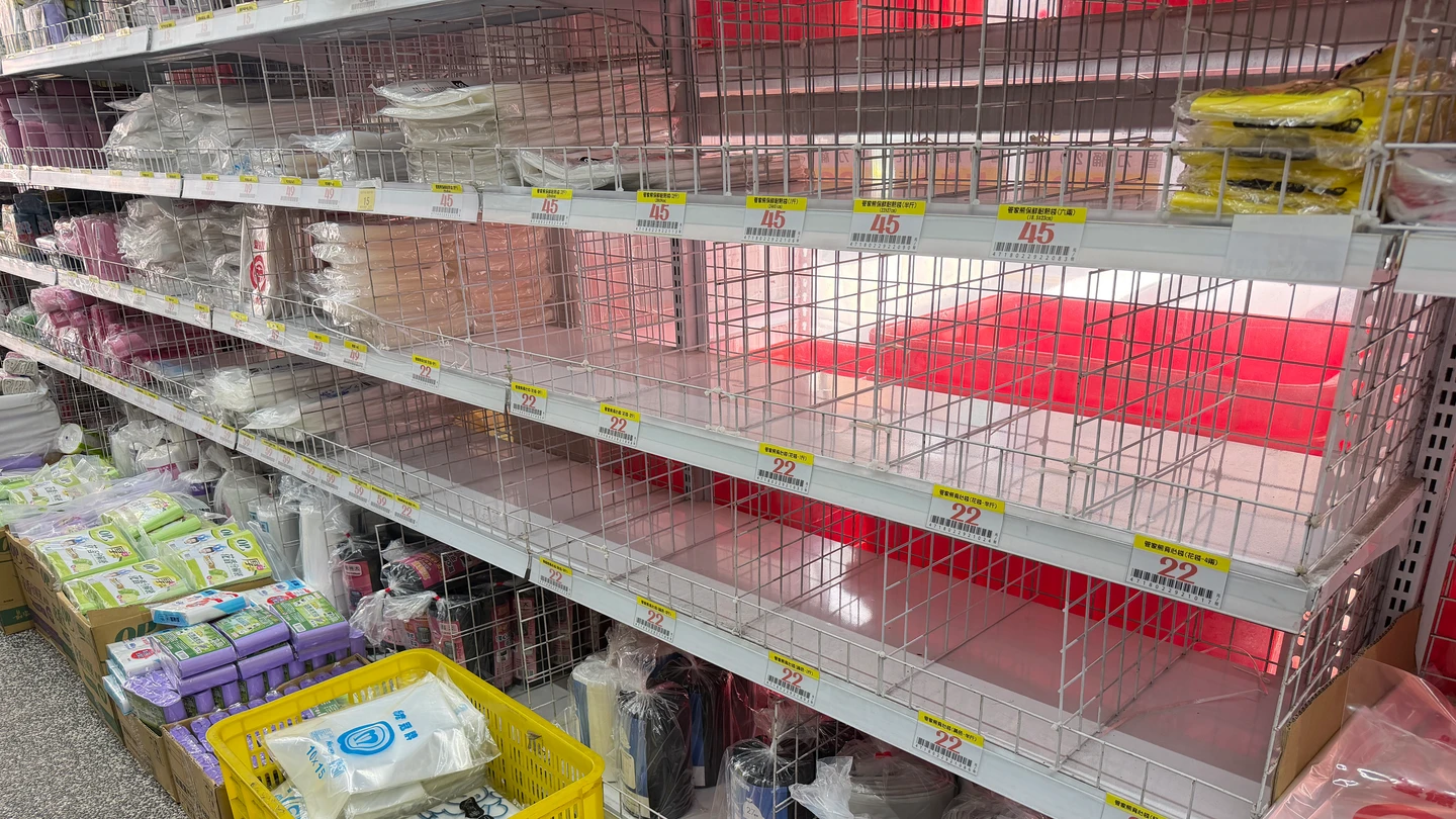 另一家傳統南北雜貨店情況同樣嚴峻,半斤、1斤、2斤等常用規格的背心袋已全數售罄,只剩較大尺寸的3斤袋勉強應市,且價格從原本每封不到20元,飆升至50元,漲幅驚人。至於連鎖賣場「小北百貨」,背心袋同樣銷售一空,僅部分耐熱袋仍有庫存;相較之下,家庭常用的垃圾袋供應尚稱穩定,未出現明顯缺貨。
