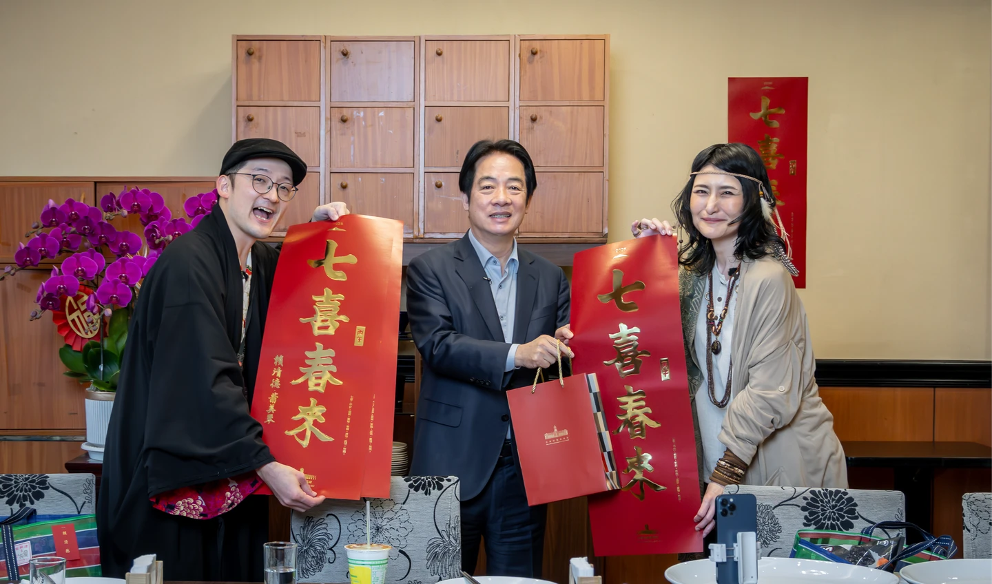 賴清德春節前當起導覽,帶Angela、Iku逛總統府,賴說,曾在電視上看過Angela,非常欽佩,十分開心能見到本人。Angela激動說:「活了50年,這是最開心的時刻,比大胃王獲勝還更開心!」