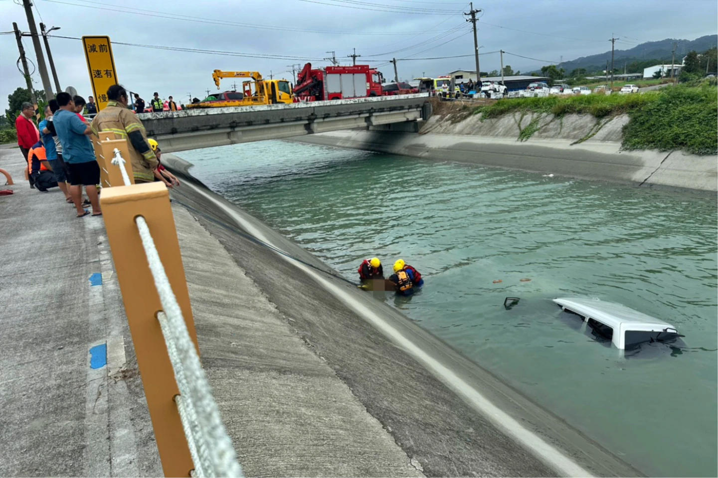 颱風天傳悲劇!轎車墜嘉南大圳滅頂 駕駛拖上岸已溺斃