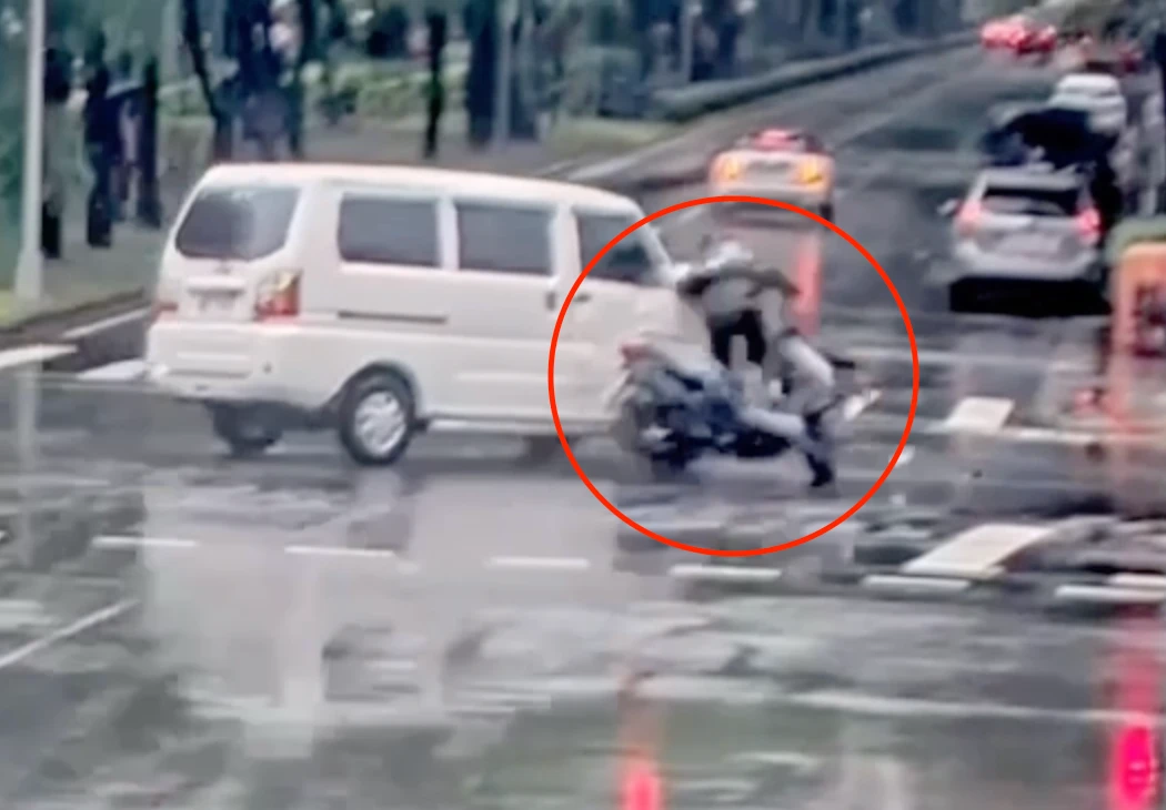 有片|北市機車遭撞成火球!女騎士腳底著火逃 路口監視器畫面曝光