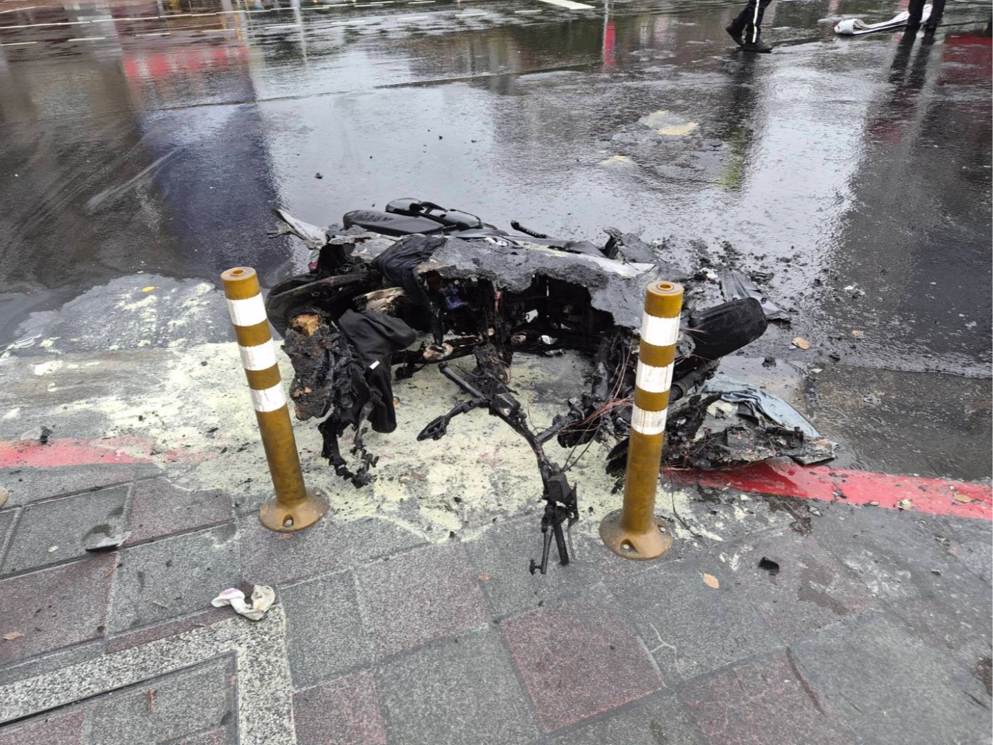 據了解,當時機車疑汽油外洩,不久引發火勢,正當機車陷入火海時,全身擦挫傷的周女發現自己的鞋子遭受波及,眼見腳底著火,周女強忍疼痛趕緊起身滅火,所幸腳底火勢很快被撲滅,警消到場搶救,順利撲滅火勢,並將意識清楚的周女送台北市立聯合醫院仁愛院區治療,所幸無生命危險。