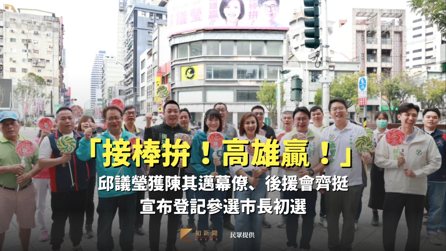 掛新看板「接棒拚!高雄贏!」邱議瑩獲陳其邁幕僚、後援會齊挺 宣布登記市長初選