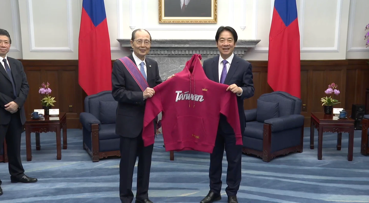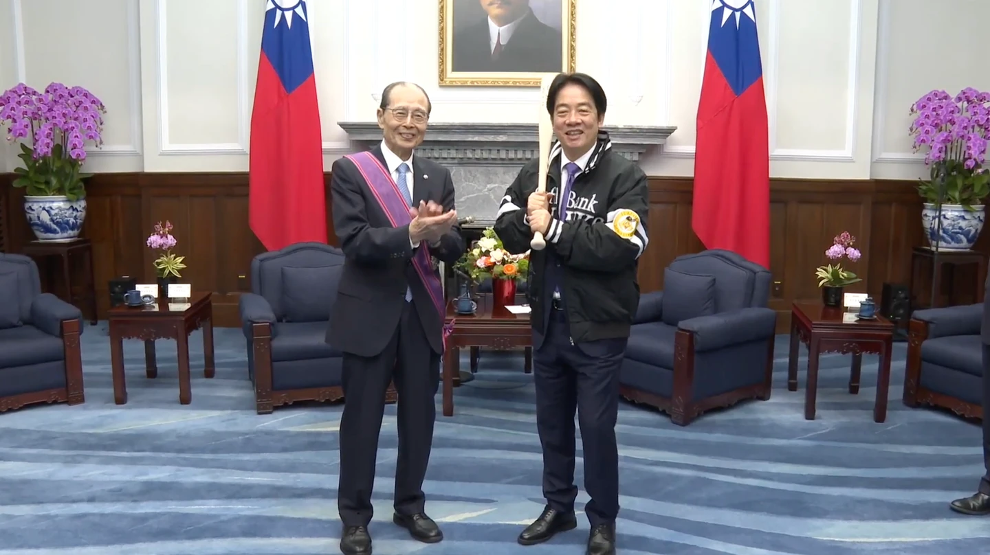 【記者許皓婷/台北報導】總統賴清德今(26)日頒授旅日棒球名將王貞治「一等景星勳章」,表彰其卓越棒球成就及推動台日棒球發展與交流的貢獻,是台日兩國共同的驕傲,並盼台日在即將登場的世界棒球經典賽(WBC)都能拿出最好表現,贏得最佳成績。身為棒球迷的賴清德,也送上台灣造型抱枕、「TEAM TAIWAN」帽T,以及「金玉滿堂、富裕幸福」的台灣金魚茶包;王貞治則回贈親筆簽名球棒、畫仙板與福岡軟銀鷹隊外套,更一同重現「金雞獨立」經典打擊姿勢。
