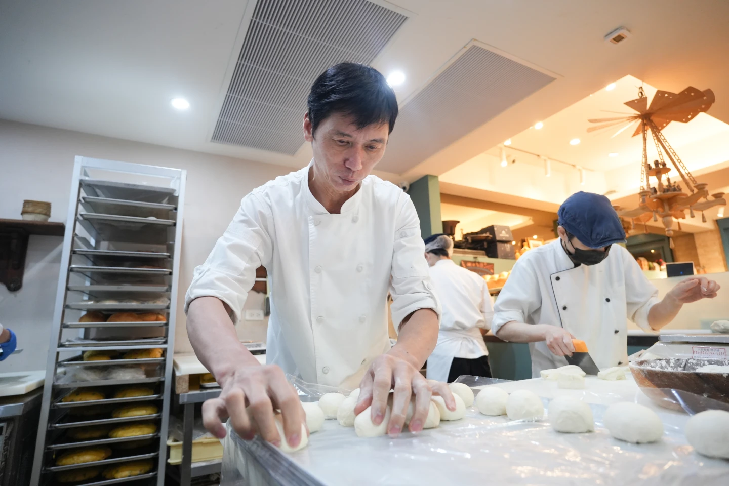 蔡瑞通坦言,當麵包店學徒,最辛苦的是工作時間長,師傅學徒制還要幫師傅洗圍裙,當然也有被師傅丟奶油、摔麵包的時候,壓力很大,「尤其在中秋烘焙旺季,幾乎是一兩天沒睡覺,整天都在分餡料、烤月餅,光一天都要做好幾千顆。」但他還是學出了興趣。