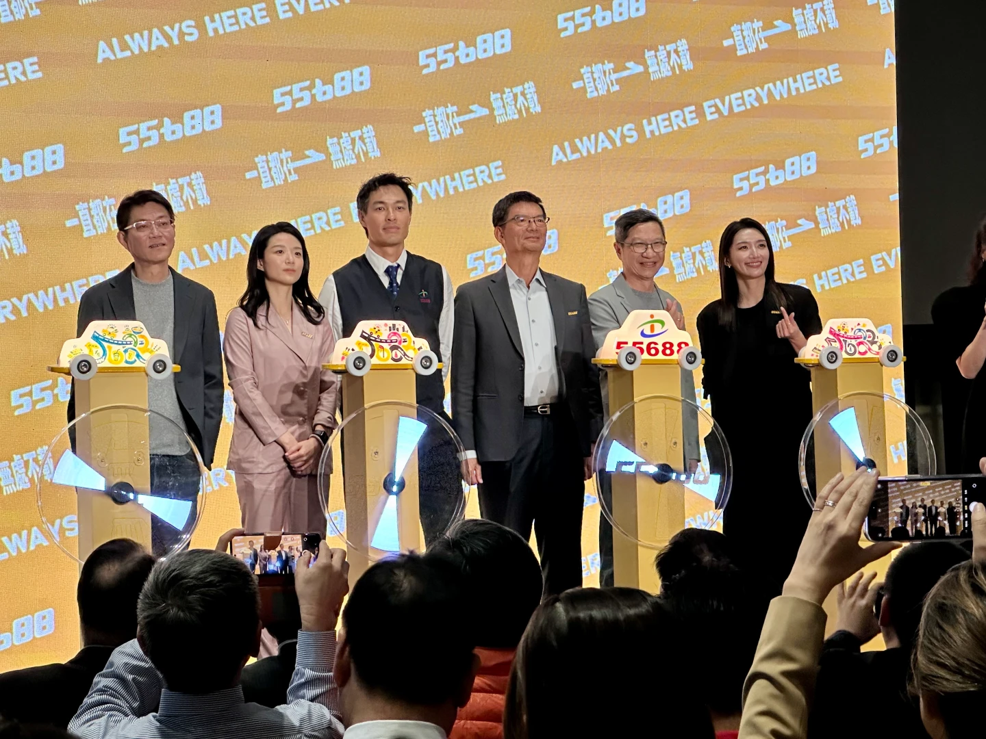 55688集團12月3日舉辦「20週年品牌展暨代言人合作記者會」,集團董事長林村田、執行長林念臻與品牌發言人林念穎出席外,代言人楊祐寧也現身,並公布三支全新品牌形象宣傳片,化身55688專業駕駛,分別開著小黃計程車與多元計程車穿梭大街小巷。