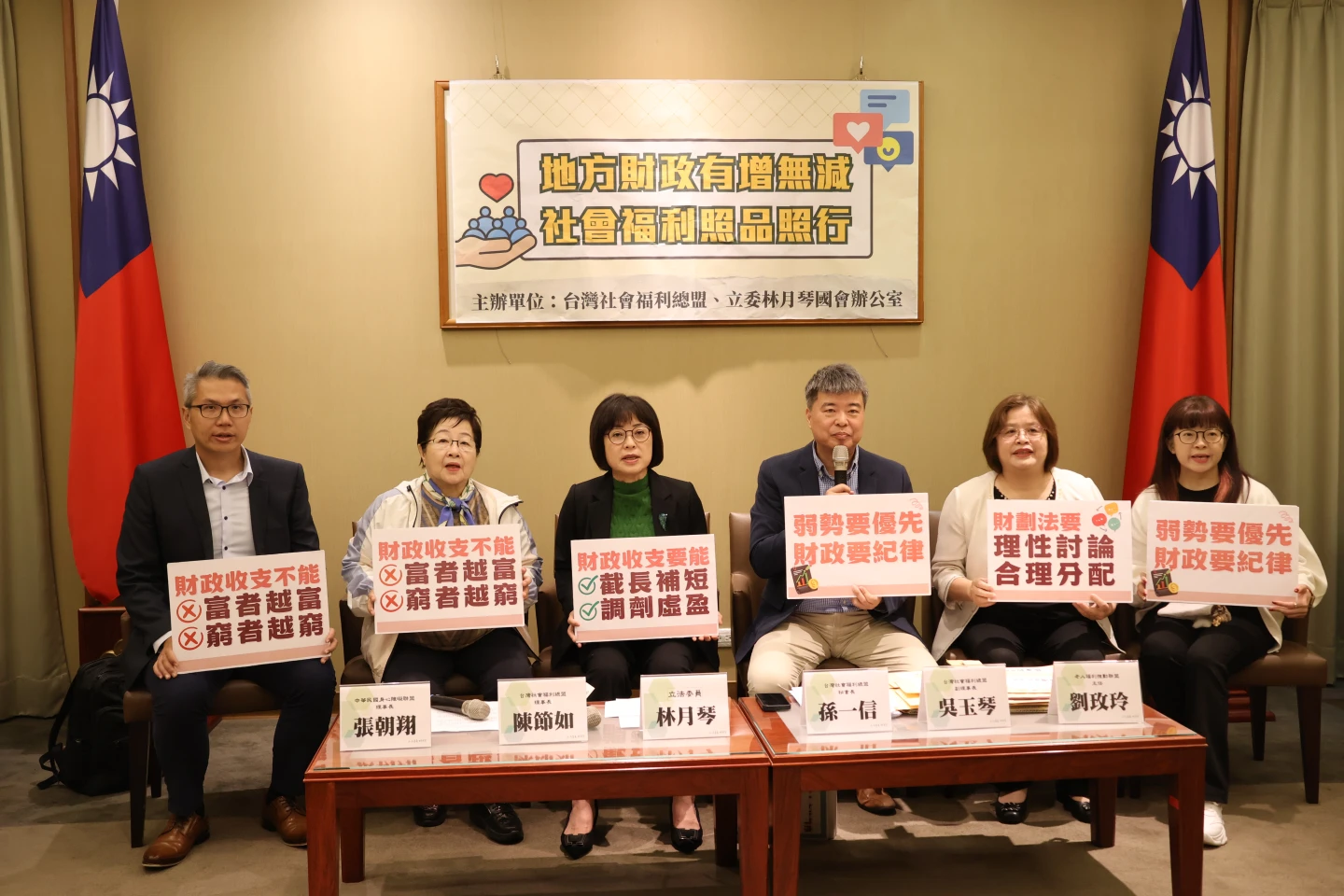 【記者施智齡/台北報導】朝野為財劃法激烈對戰,民進黨立委林月琴、台灣社福總盟今召開記者會,呼籲地方政府資源用在刀口上,鞏固現有各項福利服務。林月琴直言,藍白在財劃法暴衝修法、邊改邊錯,財政劃分不是開空白支票,「錢要跟著事權走」,她也提醒地方增加的大筆預算,不能挪去發紅包,短期加碼會吃掉長期需求,盼各縣市政府負起責任。