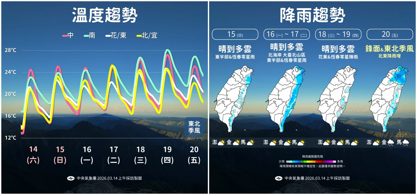 下周逐漸回暖轉東南風 20日迎下一波季風變天