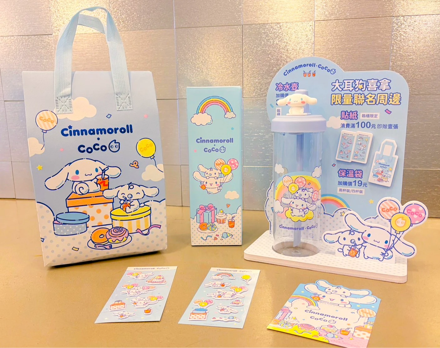 不只如此,CoCo都可 × 大耳狗喜拿12月起於全台門市限時開跑,不僅打造限時佈置店(南港LaLaport、西門町、新竹關新、桃園大同、台中火車站、西螺服務區、南投服務區等7家門市),走進門市即可沉浸式體驗大耳狗喜拿的療癒魅力,還有聯名商品保溫袋、冷水壺等,購買飲品即可加價購;單筆消費滿100元再贈貼紙。