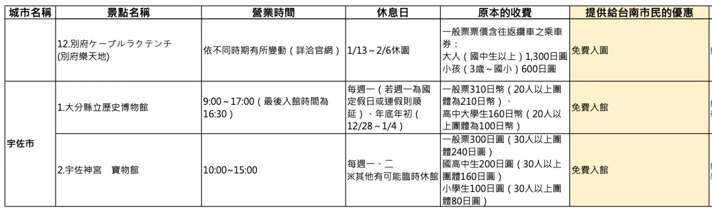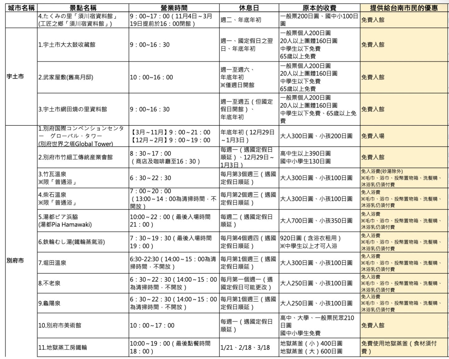 市府表示,台南此次開放的優惠景點均為一時之選,期盼藉此吸引更多友誼市日本友人來到台南觀光,帶動地方整體觀光成長與國際交流。