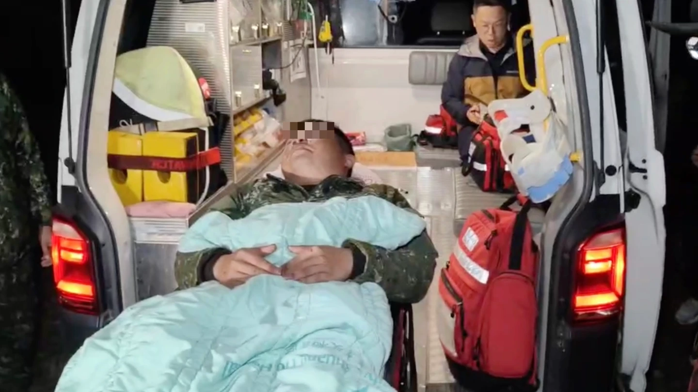 【記者王煌忠/台中報導】陸軍十軍團江姓裝甲兵21日利用休假獨攀「八唐縱走」,卻不慎摔落邊坡導致手機噴飛失聯,求生意志強烈的江男,靠著僅存的3根能量棒以及溪水果腹、解渴,並在白天不斷吹哨,受困歷經110小時,昨天在警消與國軍搜救人員全力搜尋,在南松鶴山附近溪谷尋獲他,當下江男意識清楚,僅臉部及身體擦挫傷,甚至還能向空拍機比讚示意,昨晚已由搜救隊成功背負下山,並送往台中國軍醫院治療。