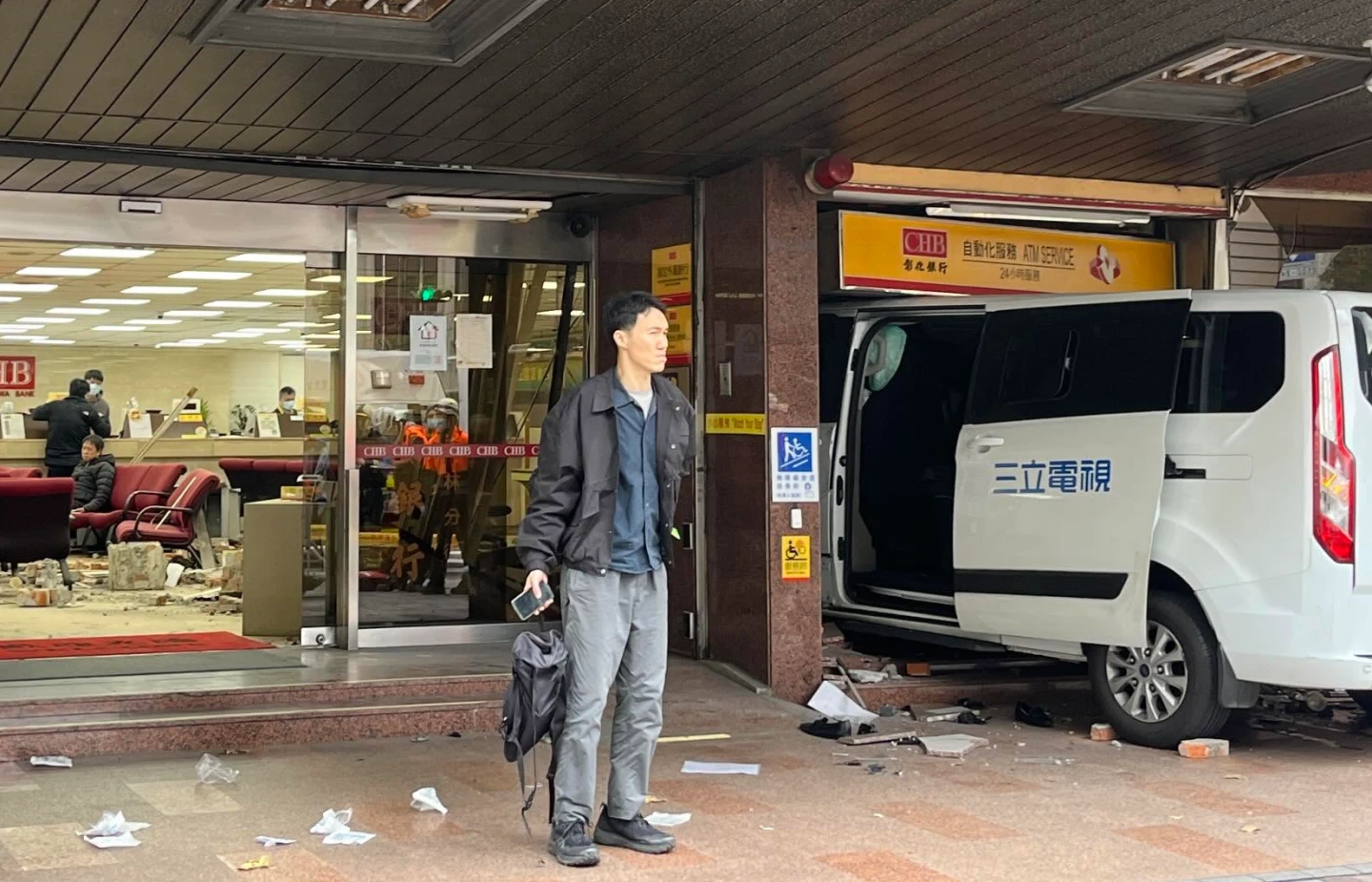 銀行第一視角片|三立採訪車恐怖暴衝「保全員命大與死神擦身」 3重傷最新狀況曝