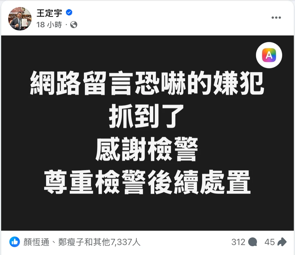 警方火速破案 王定宇:非五毛網軍
