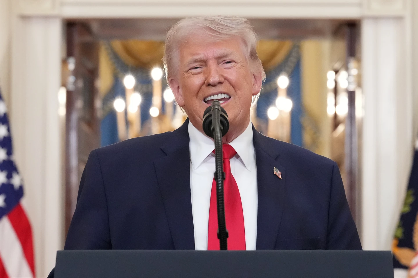 川普4月2日在白宮發表談話,揚言要把伊朗「炸回石器時代」。美聯社 zoomin